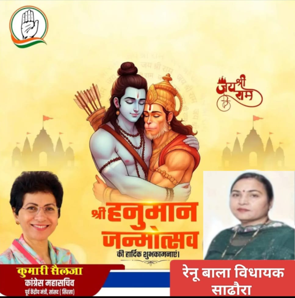 कपुरी :- हल्का सधौरा विधायक मैडम रेणु बाला जी नें हनुमान जन्मोत्सव पर शुभकामनायें दीं!