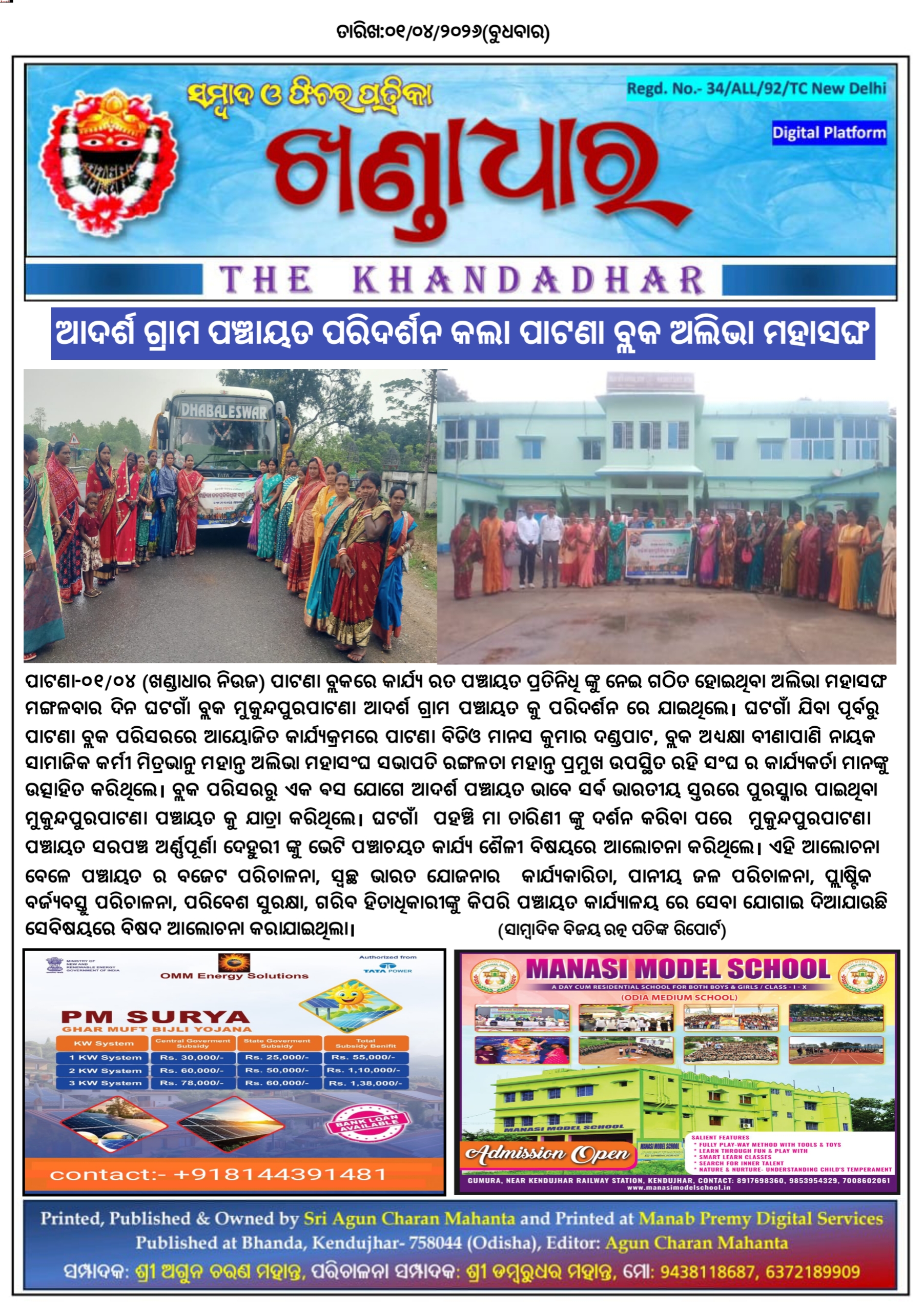 ଖଣ୍ଡାଧାର ନିଉଜ- ସାମ୍ବାଦିକ ବିଜୟ ରତ୍ନ ପତିଙ୍କ ରିପୋର୍ଟ।