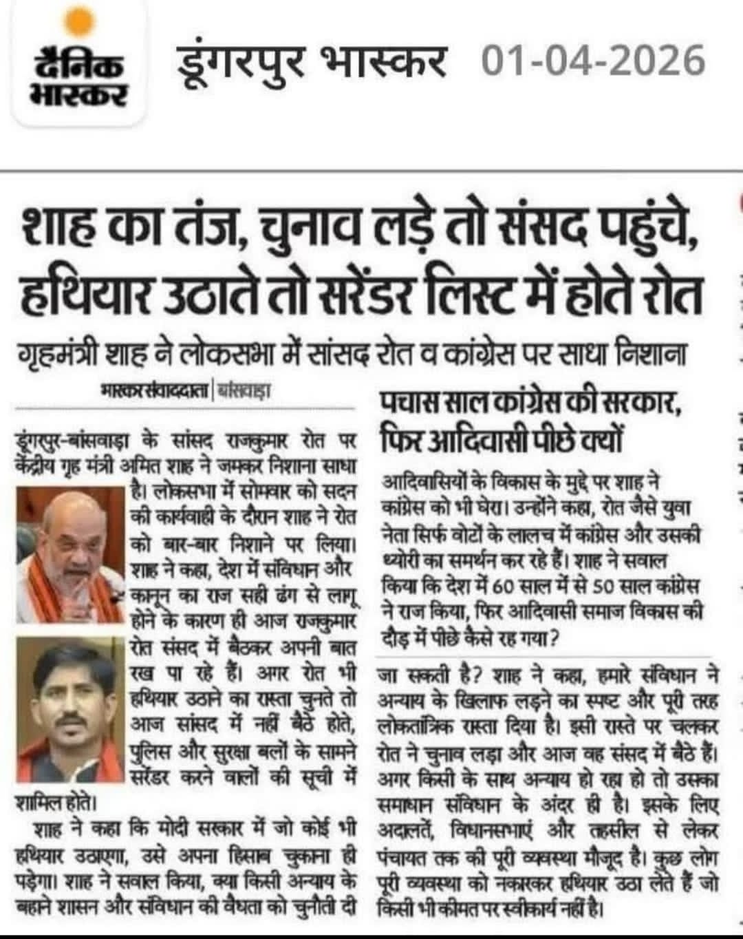 भारत आदिवासी पार्टी के सच्चाई के लिए आवाज उठाने वाले राजकुमार रोत को नक्सलाइट बोलकर आदिवासी समाज पे उंगली उठा रहे हैं ,केंद्रिय गृह मंत्री अमित शाह