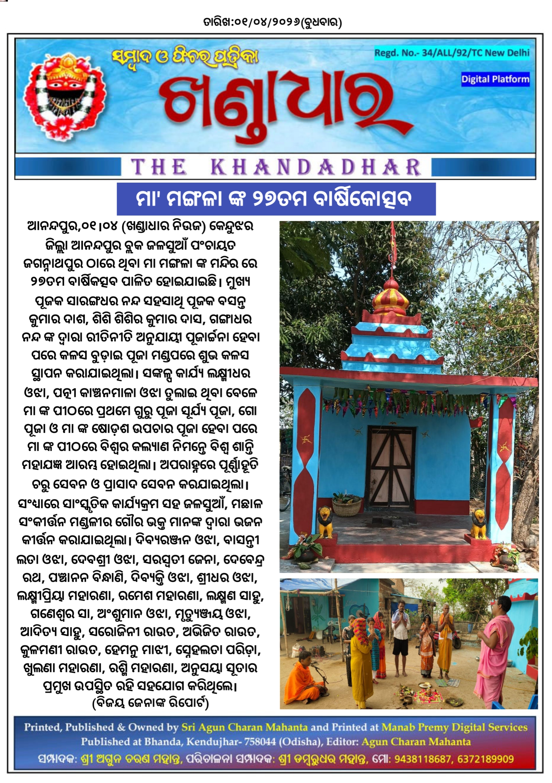 ମା ମଙ୍ଗଳା ଙ୍କ ୨୭ତମ ବାର୍ଷିକୋତ୍ସବ।