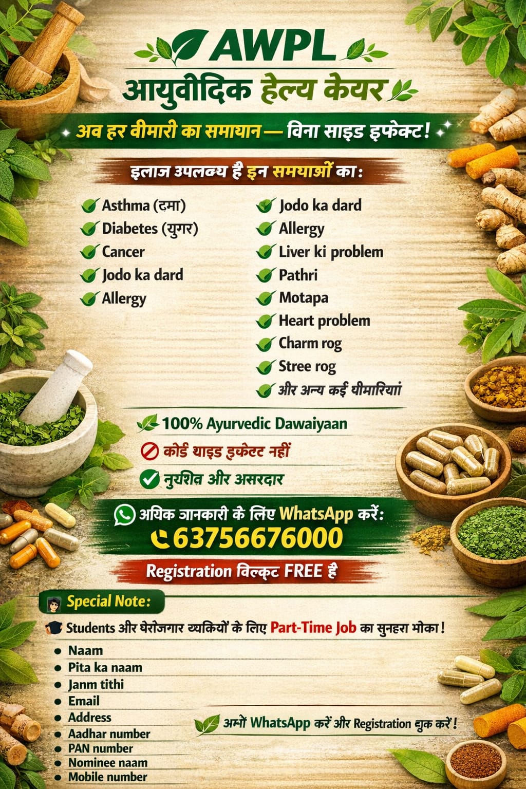 रोजगार हेतुः सम्पर्क मैसेज 6375667600पर करे.