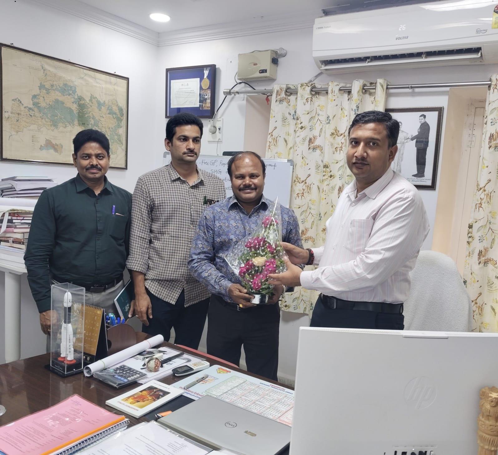 జిల్లా కలెక్టర్ ఆదిలాబాద్ గారికి మర్యాదపూర్వంగా కలిసిన ఆర్ఎం డి విజయ భాను, సార్ తో డిప్యూటీ ఆర్ ఎం (ఓ) డి శ్రీహర్ష, మరియు డిప్యూటీ ఆర్ ఎం (m) ఎస్ రామయ