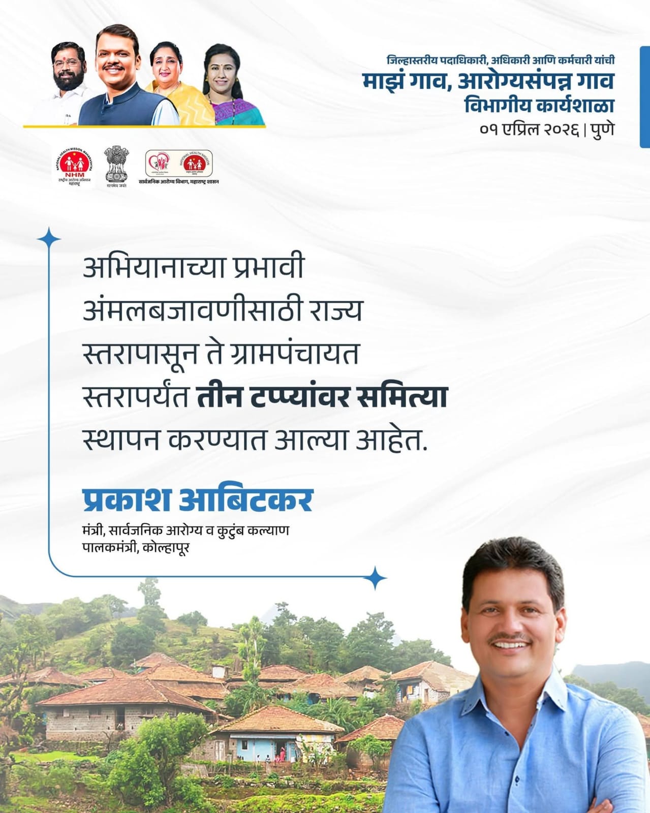 ‘माझं गाव, आरोग्यसंपन्न गाव’ अभियान राज्य स्तरापासून ग्रामपंचायत स्तरापर्यंत प्रभावीपणे राबविण्यासाठी तीन टप्प्यांवर समित्या स्थापन करण्यात आल्या आहेत