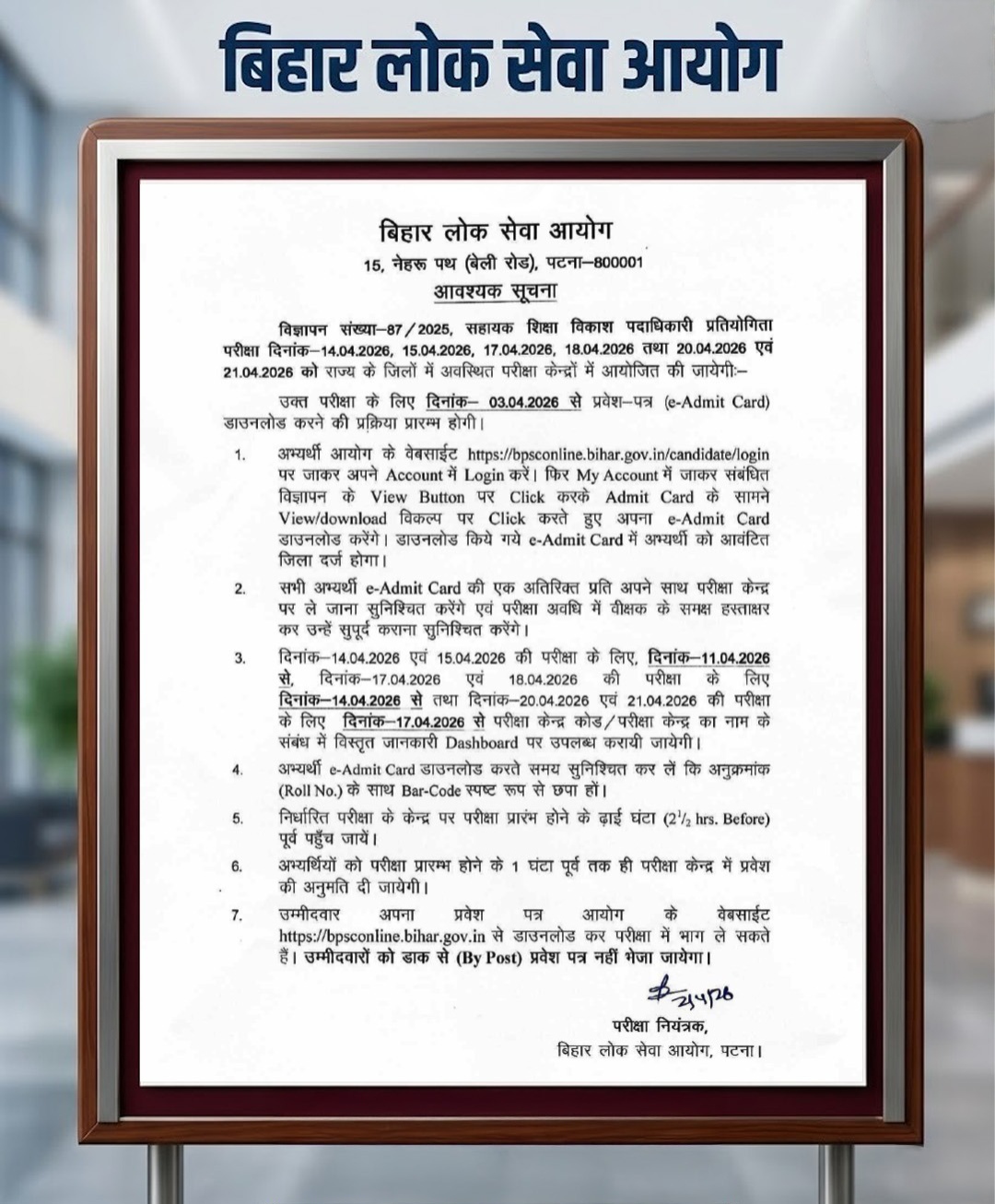 * डाक द्वारा सूचना: ध्यान दें कि एडमिट कार्ड डाक (By Post) से नहीं भेजे जाएंगे, इसे केवल ऑनलाइन ही डाउनलोड करना होगा।