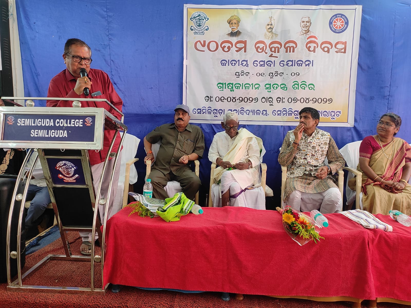 ସେମିଳିଗୁଡା ମହାବିଦ୍ୟାଳୟ ରେ ଉଚ୍ଚ ଶିକ୍ଷା ବିଭାଗର ନିର୍ଦ୍ଦେଶ କ୍ରମେ ଓଡ଼ିଆ ପକ୍ଷ ପାଳନ ଅବସରରେ ଜାତୀୟ ସେବା ଯୋଜନାର ଗ୍ରୀଷ୍ମକାଳୀନ ସ୍ୱତନ୍ତ୍ର ଶିବିର ଏବଂ ଉତ୍କଳ ଦିବସ ମହାସମାରୋହରେ ପାଳିତ ହୋଇଯାଇଛି। ସର୍ବପ୍ରଥମେ ଜାତୀୟ ସେବା ଯୋଜନାର ସ୍ୱେଚ୍ଛାସେବୀଗଣ ଏନ୍ ଏସ ଏସ କ୍ଲାପ୍ ଦେଇ ଅତିଥି ସମୂହଙ୍କୁ କଲେଜ ପରିସରରେ ନୂତନ ଭାବେ ପ୍ରତିଷ୍ଠା ହୋଇଥିବ ନିଶଣି ମୁଣ୍ଡା ପାଖରେ ଚଇତି ପର୍ବ ଅବସରରେ ପୂଜା ଅର୍ଚ୍ଚନା କରି ଅତିଥି ସମୂହଙ୍କୁ ମଞ୍ଚକୁ ନିଆ ଯାଇଥିଲା। ଓଡ଼ିଆଙ୍କ ଇଷ୍ଟ ଦେବ ପ୍ରଭୁ ଜଗନ୍ନାଥଙ୍କ ଧୂପ,ପୁଷ୍ପ,ଦ୍ୱୀପ ଦାନ କରି ସଭାକାର୍ଯ୍ୟ ଆରମ୍ଭ କରା ଯାଇଥିଲା। ମହାବିଦ୍ୟାଳୟର ଅଧ୍ୟକ୍ଷା ଡ . ଝାନ୍ ସୀ ସିଂହଙ୍କ ସଭାପତିତ୍ୱରେ ଆରମ୍ଭ ହୋଇଥିବା ଏହି କାର୍ଯକ୍ରମରେ ମୁଖ୍ୟ ଅତିଥି ଭାବେ କଲେଜର ପ୍ରତିଷ୍ଠାତା ଶ୍ରୀ କୃଷ୍ଣ ସିଂହ, ମୁଖ୍ୟ ବକ୍ତା ଭାବେ ସୁବକ୍ତା ପ୍ରାଧ୍ୟାପକ ଡ଼. ଅମ୍ବିକା ବଲ୍ଲଭ ବାହିନୀପତି, ସ୍ଵତନ୍ତ୍ର ଅତିଥି ଭାବେ ବାଲେଶ୍ୱର ଫକୀର ମୋହନ ବିଶ୍ୱବିଦ୍ୟାଳୟରୁ ଆସିଥିବା ଅବସର ପ୍ରାପ୍ତ ପ୍ରଫେସର ଡ଼. ଉମାକାନ୍ତ ଦାସ ଯୋଗ ଦେଇ ସଭାର ମାନ ବୃଦ୍ଧି କରିଥିଲେଏବଂ ଅନ୍ୟତମ ଅତିଥି ଭାବରେ ଡ଼. ଚିତ୍ତରଞ୍ଜନ ମିଶ୍ର ମଞ୍ଚାସିନ ଥିଲେ। ମୁଖ୍ୟଅତିଥି ଛାତ୍ରଛାତ୍ରୀମାନେ ମନନଶିଳ ହୁଅନ୍ତୁ, ଓଡ଼ିଆ ଭାଷା ସାହିତ୍ୟ ସଂସ୍କୃତି ର ରକ୍ଷା କରିବା ସହ ସମାଜର ସୁନାଗରିକ ହୁଅନ୍ତୁ ବୋଲି ମତ ରଖିଥିବାବେଳେ, ମୁଖ୍ୟବକ୍ତା ଡ଼. ବାହିନୀପତି ସ୍ଵତନ୍ତ୍ର ଉତ୍କଳ ପ୍ରଦେଶ ଗଠନରେ ମହାପୁରୁଷମାନଙ୍କ ତ୍ୟାଗ ସଂପର୍କରେ ମତବ୍ୟକ୍ତ କରି ଅତୀତର ଇତିହାସକୁ ଉନ୍ମୋଚନ କରିଥିଲେ। ପ୍ରଫେସର ଦାସ ସେଚ୍ଛାସେବୀ ମାନଙ୍କ ଦାୟିତ୍ଵ ଏବଂ କର୍ତ୍ତବ୍ୟ ଉପରେ ଆଲୋକପାତ କରିଥିଲେ। ଏହି ଅବସରରେ ଓଡ଼ିଆ ବିଭାଗର ପ୍ରାକ୍ତନ ଛାତ୍ର ଶ୍ରୀ ସ୍ଵସ୍ତିକ କୁମାର ବେହେରା, ଇ. ଶୁଭଙ୍କର ସ୍ୱର୍ଣପତି ଉତ୍କଳ ଦିବସ ସମ୍ପର୍କିତ ପ୍ରବନ୍ଧ ପାଠ କରିଥିଲେ । ଏନ୍.ଏସ୍.ଏସ୍ ତରଫରୁ ମହାନଦୀ ଜଳକ୍ରୀଡା ଉତ୍ସବରେ ଯୋଗଦେଇଥିବା ପଦ୍ମନ୍ ହନ୍ତାଳ ଓ ସାନୁ ଖିଲଙ୍କୁ ସମ୍ଵର୍ଦ୍ଧିତ କରାଯାଇଥିଲା। କାର୍ଯ୍ୟକ୍ରମ ଅଧିକାରୀ ଡ଼ ରମେଶ ମଲ୍ଲିକ ଅତିଥିମାନଙ୍କ ପରିଚୟ ପ୍ରଦାନ କରିଥବା ସ୍ଥଳେ କାର୍ଯ୍ୟକ୍ରମ ଅଧିକାରୀ ଶ୍ରୀମତୀ ସ୍ନିଗ୍ଧା ପଟ୍ଟନାୟକ ଧନ୍ୟବାଦ୍ ଅର୍ପଣ କରିଥିଲେ। ସମ୍ପୂର୍ଣ୍ଣ କାର୍ଯ୍ୟକ୍ରମ କୁ ଡ଼ ବିଦ୍ୟୁତ୍ ପ୍ରଭା ରାଉତ ପରିଚାଳନା କରିଥିଲେ। ସ୍ୱେଚ୍ଛାସେବୀ ମାନେ କଲେଜ ପରିସରକୁ ସଫା କରିବା ସହ ଚଇତି ପର୍ବ ପାଳନ ଅବସରରେ ଢେମସା ନାଚି ଅତିଥିମାନଙ୍କୁ ମୁଗ୍ଧ କରିଥିଲେ।