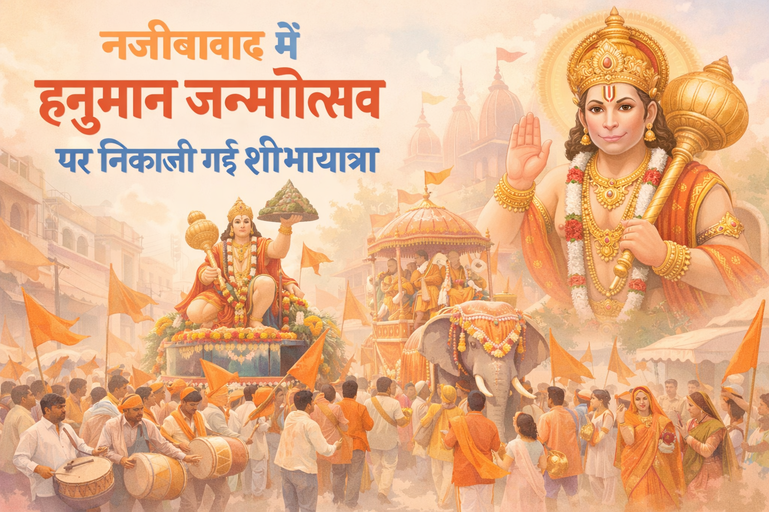 नजीबाबाद में हनुमान जन्मोत्सव के अवसर पर शोभायात्रा निकाली गई। इसमें बड़ी संख्या में श्रद्धालु शामिल हुए, जिससे नगर में भक्तिमय माहौल बन गया।