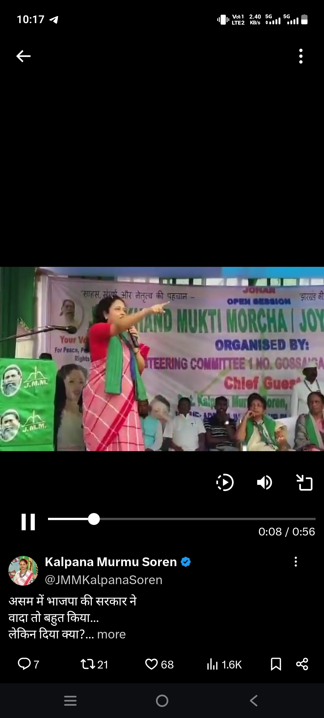 আপনার সম্মানের জন্য। Kalpana soren murmu Jharkhand