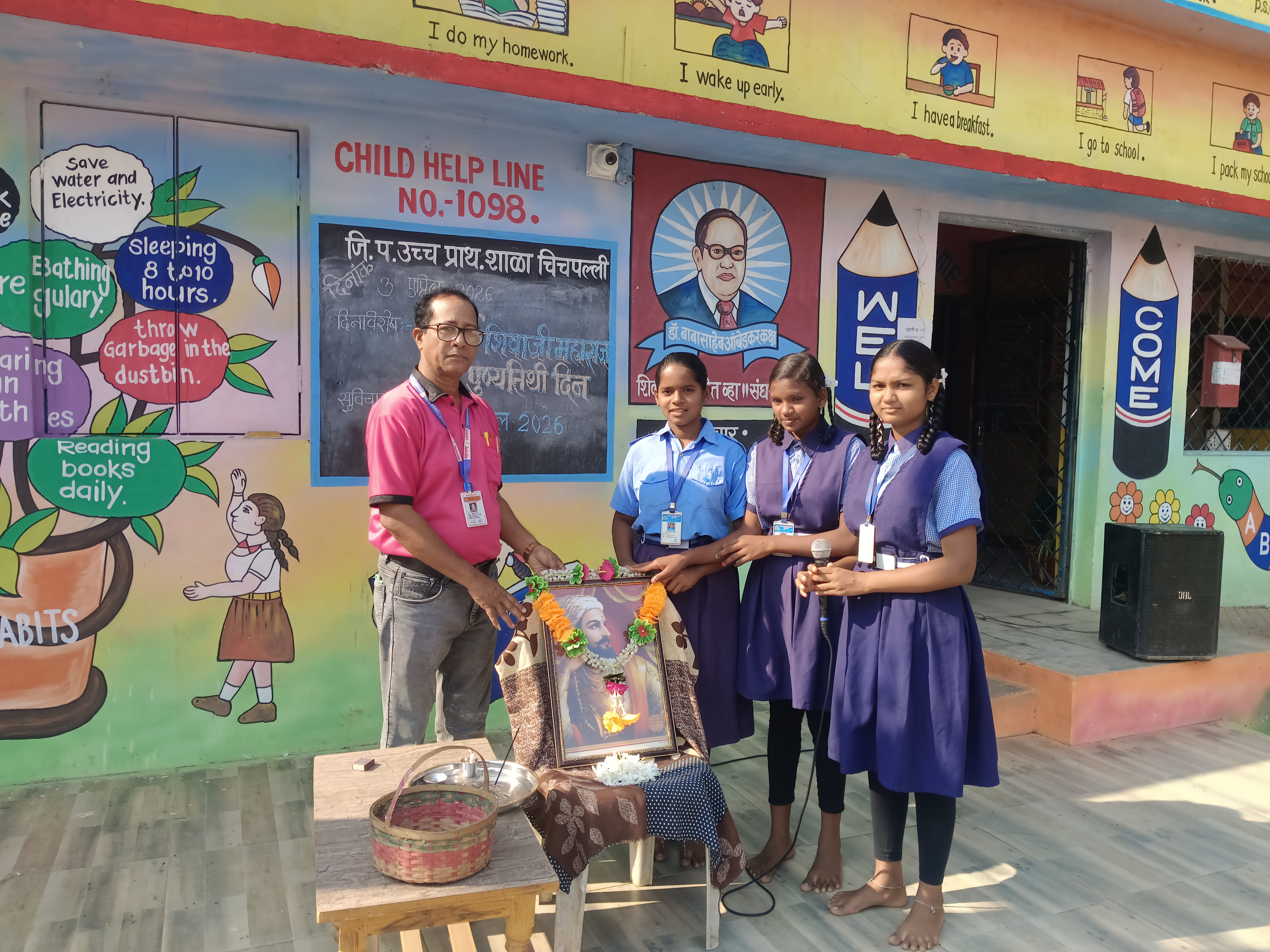 🌼 जि.प. उ.प्रा. शाळा चिचपल्ली येथे छत्रपती शिवाजी महाराज यांच्या पुण्यतिथीनिमित्त भावपूर्ण वातावरणात आदरांजली कार्यक्रम आयोजित करण्यात आला. या कार्यक्रमास शाळेचे मुख्याध्यापक तथा केंद्रप्रमुख श्री. विजय वनकर यांनी उपस्थित राहून छत्रपती शिवाजी महाराजांच्या प्रतिमेस पुष्पहार अर्पण करून त्यांना विनम्र अभिवादन केले. 👏