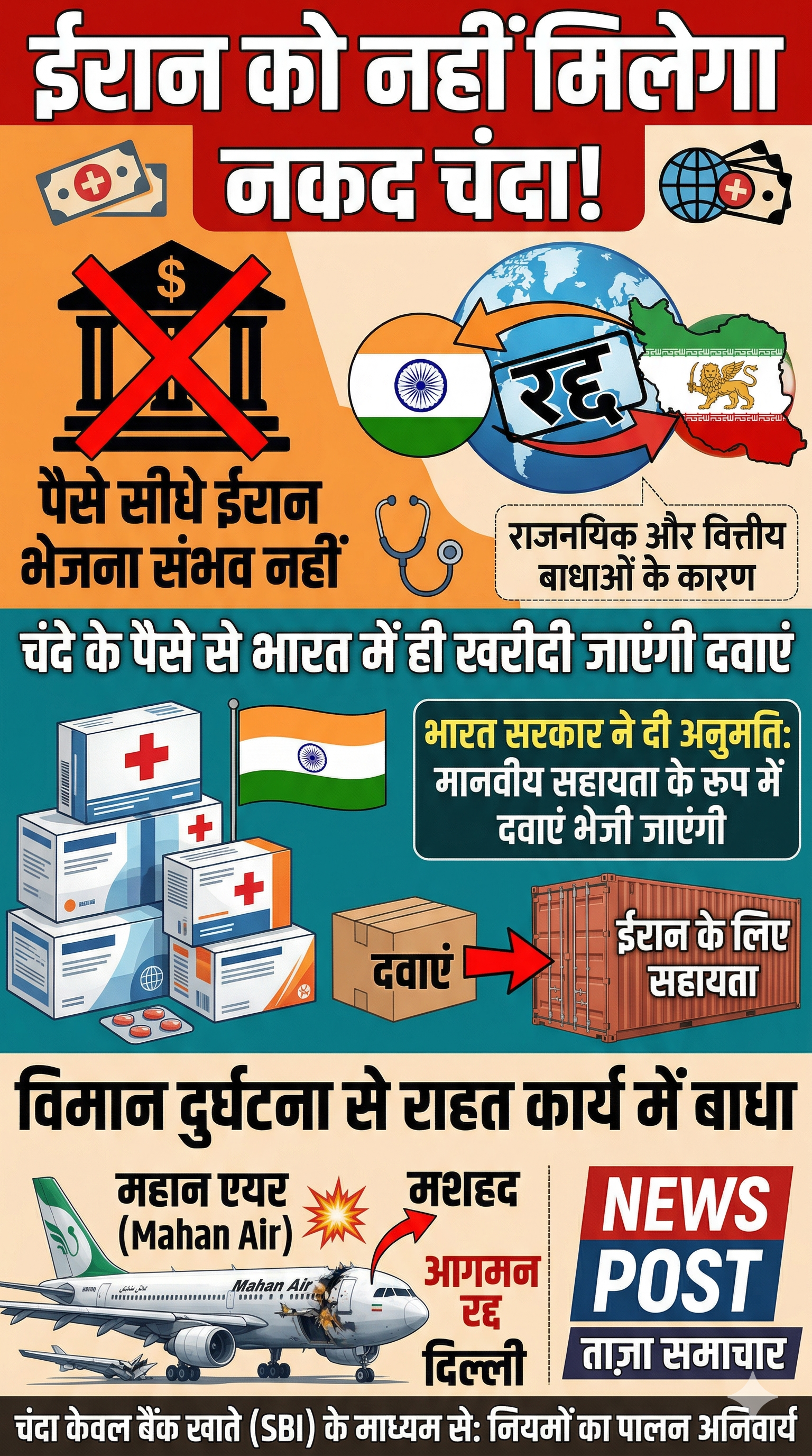 ईरान नहीं जा पाएगा भारत में जुटाया चंदा, मनी ट्रांसफर को लेकर फंसा पेंच, अब भारत में ही खरीदी जाएंगी दवाएं