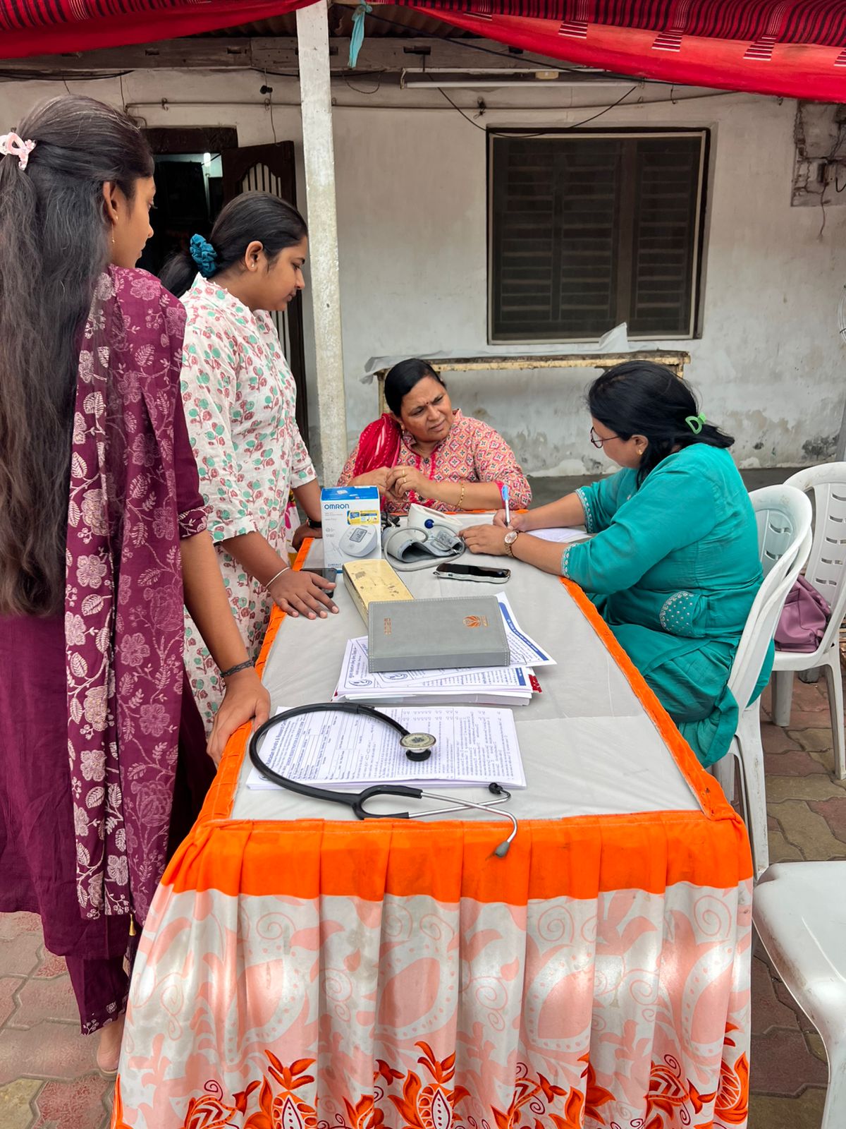 આ સાથે કિરણ હોસ્પિટલના નિષ્ણાત ડોક્ટરો દ્વારા નિઃશુલ્ક હેલ્થ કેમ્પનું આયોજન સવારે ૮:૦૦ થી બપોરે ૧૨:૩૦ સુધી કરવામાં આવ્યું હતું. જેમાં બ્લડ પ્રેશર (BP), SpO₂, ECG, BMI અને રેન્ડમ બ્લડ શુગર (RBS) જેવી આરોગ્ય તપાસો તેમજ જનરલ ફિઝિશિયન દ્વારા માર્ગદર્શન આપવામાં આવ્યું હતું. આ કેમ્પનો લાભ કુલ ૧૨૪ લોકોએ લીધો હતો.