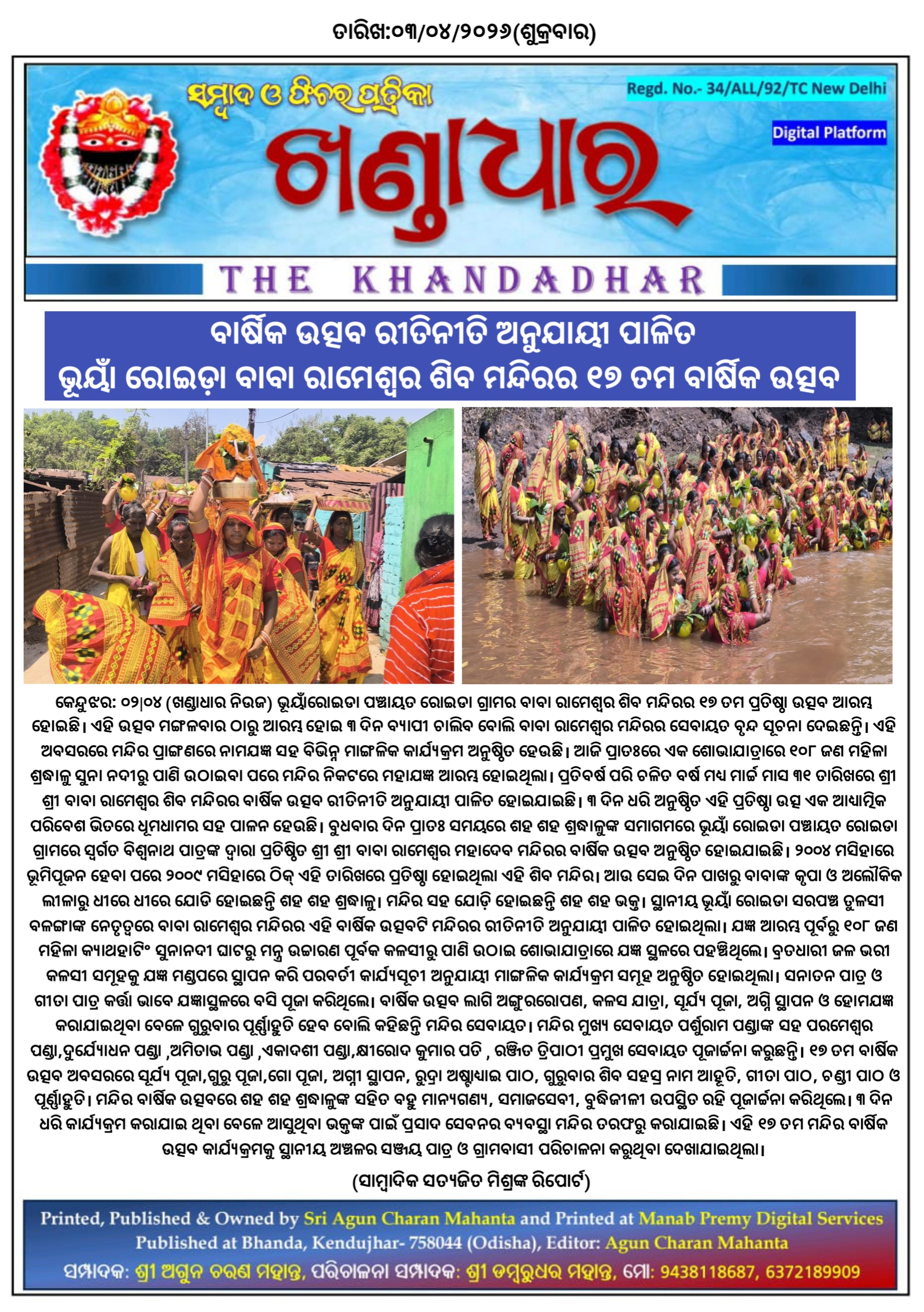 ଖଣ୍ଡାଧାର ନିଉଜ- ସାମ୍ବାଦିକ ସତ୍ୟଜିତ ମିଶ୍ରଙ୍କ ରିପୋର୍ଟ।