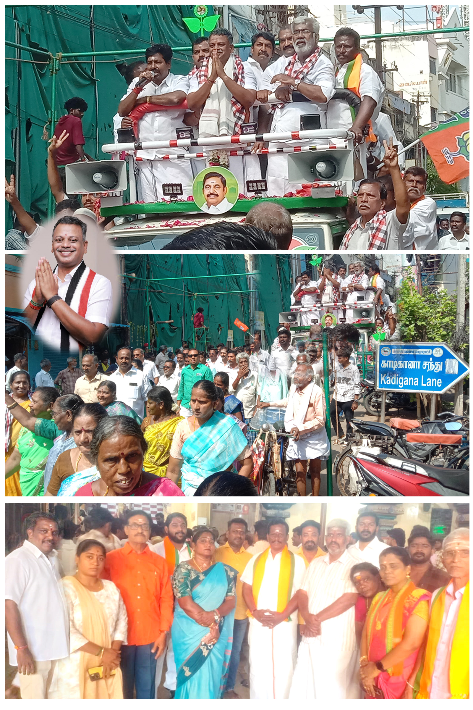 தேர்தல்பரப்புரையின்போது அதிமுகவின் முன்னால் அமைச்சர் வெல்ல மண்டி நடராசன், சீனிவாசன், மலைக்கோட்டை ஐயப்பன், முன்னால் ஆவின் சேர்மன் கார்த்திகேயன், அன்பழகன், பாரதிய ஜனதாகட்சியின் மாவட்ட தலைவர் ஒண்டிமுத்து மற்றும் தேசிய ஜனநாயக கூட்டணி கட்சிகளின் பிரமுகர்கள் பலரும், தொண்டர்களும் புடைசூழ வாக்கு சேகரிப்பு பணியில் கலந்துக்கொண்டனர்.