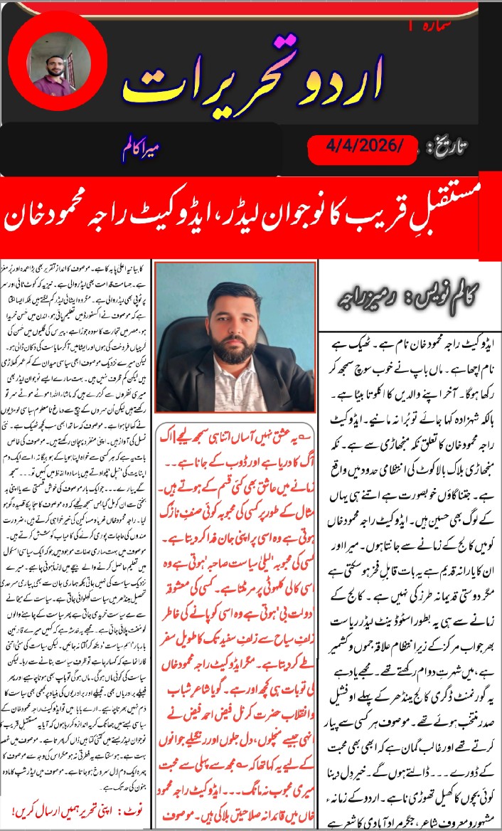 مستقبلِ قریب کا نوجوان لیڈر، ایڈوکیٹ راجہ محمود خاں