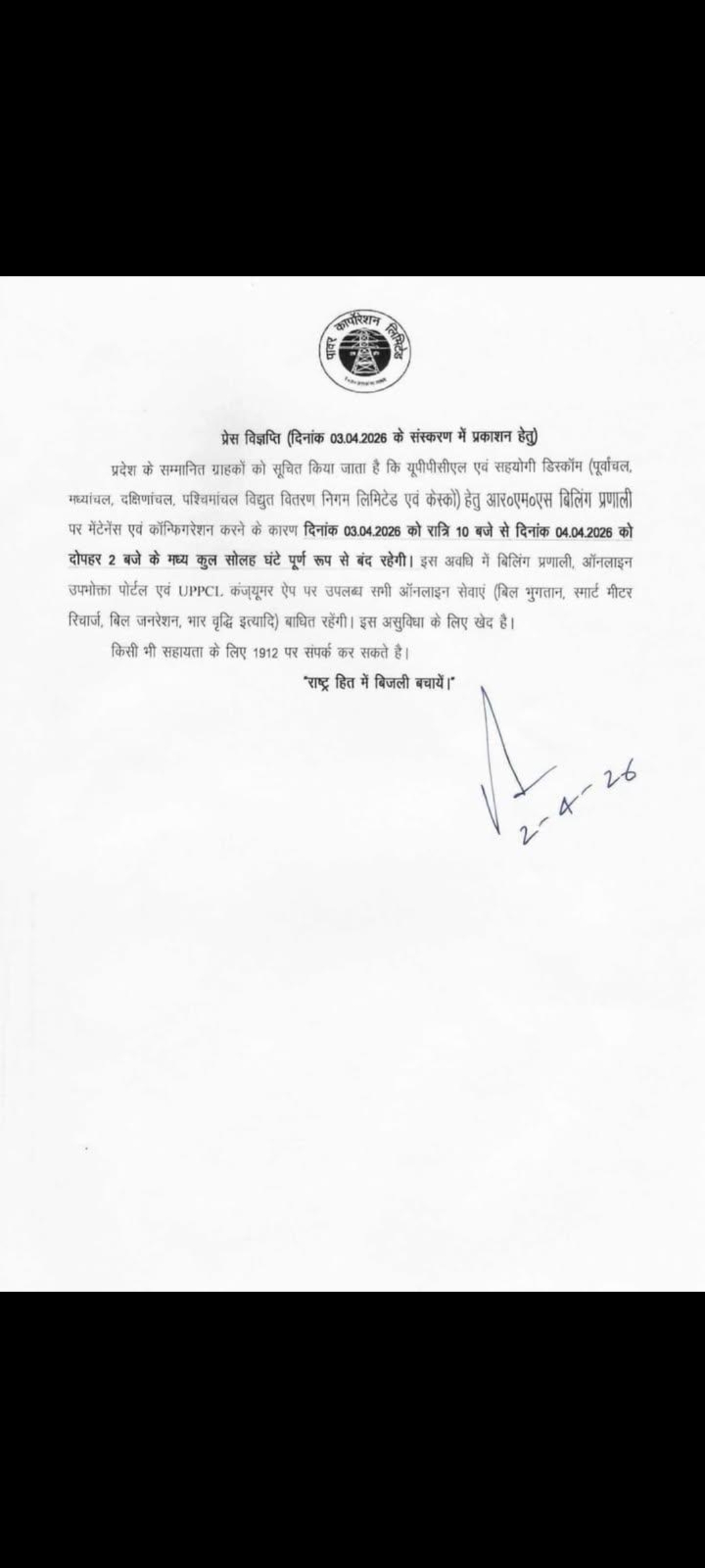 बिलिंग सिस्टम का होगा मेंटेनेंस उपभोक्ता सेवाएं रहेगी बंद