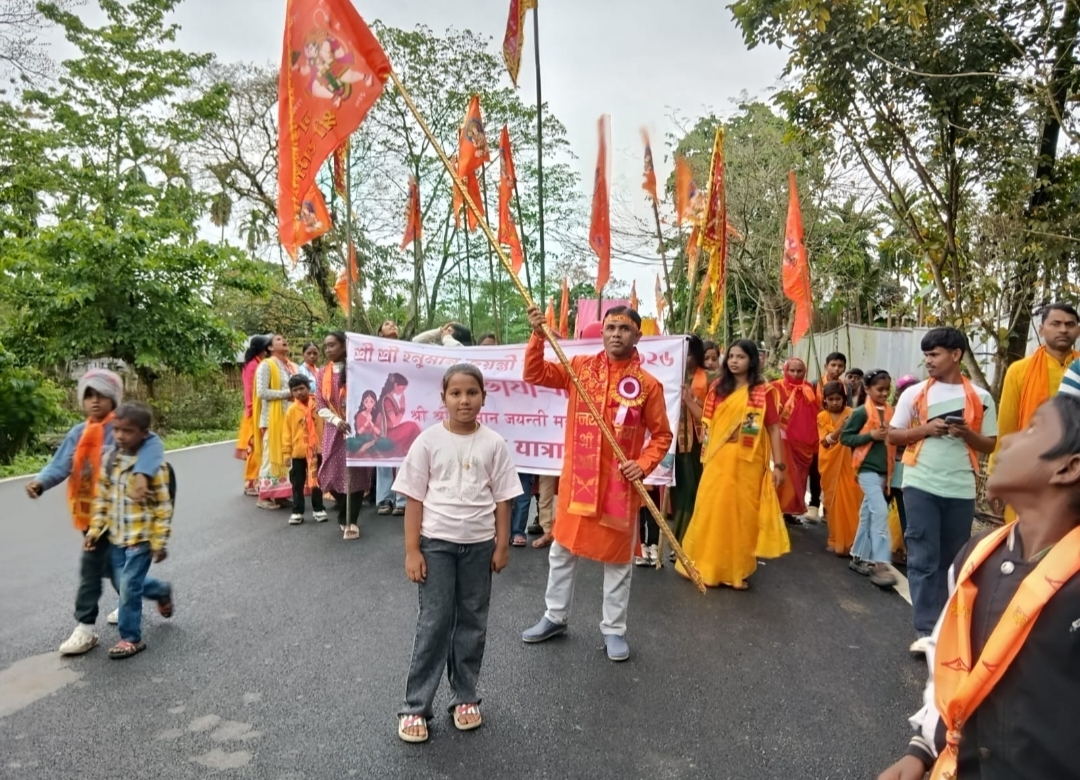 सैखोवाघाट:- श्री श्री हनुमान मंदिर धौला में हनुमान जयंती के पावन अवसर पर हनुमान जी की पूजा - अर्चना कर भव्य शोभायात्रा का आयोजन किया गया। इस अवसर पर आकर्षक झांकियों ने श्रद्धालुओं का मन मोह लिया और पूरे क्षेत्र में भक्ति का माहौल छा गया।