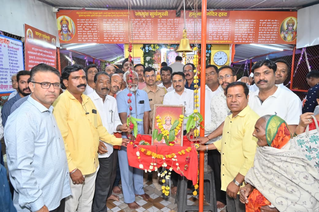 श्रीरामपूर (शिवप्रहार न्यूज नेटवर्क )- शहरातील जागृत सूर्यमुखी हनुमान मंदिर येथे सालाबाद प्रमाणे हनुमान जन्मोत्सव आनंदात साजरा करण्यात आला.हनुमान जन्मोत्सव निमित्त जागृत सूर्यमुखी हनुमान मंदिर ट्रस्टच्या वतीने भजन,महाआरती आणि महाप्रसादाचे आयोजन केलेले होते.तरी महाआरतीला प्रमुख उपस्थिती श्रीरामपूर विभागाचे प्रांत तथा महसूल उपविभागीय अधिकारी किरण सावंत पाटील,पोलीस उपअधीक्षक जयदत्त भवर,तहसीलदार मिलिंदकुमार वाघ, जेष्ठ पत्रकार मनोजभाऊ आगे,नायब तहसीलदार राजुळेताई,हेमाताई गुलाटी,सिद्धार्थ मुरकुटे तसेच पीएसआय घाणे,पोलीस कॅान्स्टेबल रणन्नवरे,त्रिभुवन,शेलार,डॉ.पांडे, महाराज कंत्रोड,गणेश गुजराणी,डॉ. सोनटक्के,रवींद्रशेठ धूप्पड,ऍड अजितभाऊ डोखे,ऍड.अनिल काळे,ऍड.रमेश चौधरी,ऍड.सनी घोरपडे,विजय शेलार,विजय कहाणे,अतुल गिरमे इ उपस्थित होते.