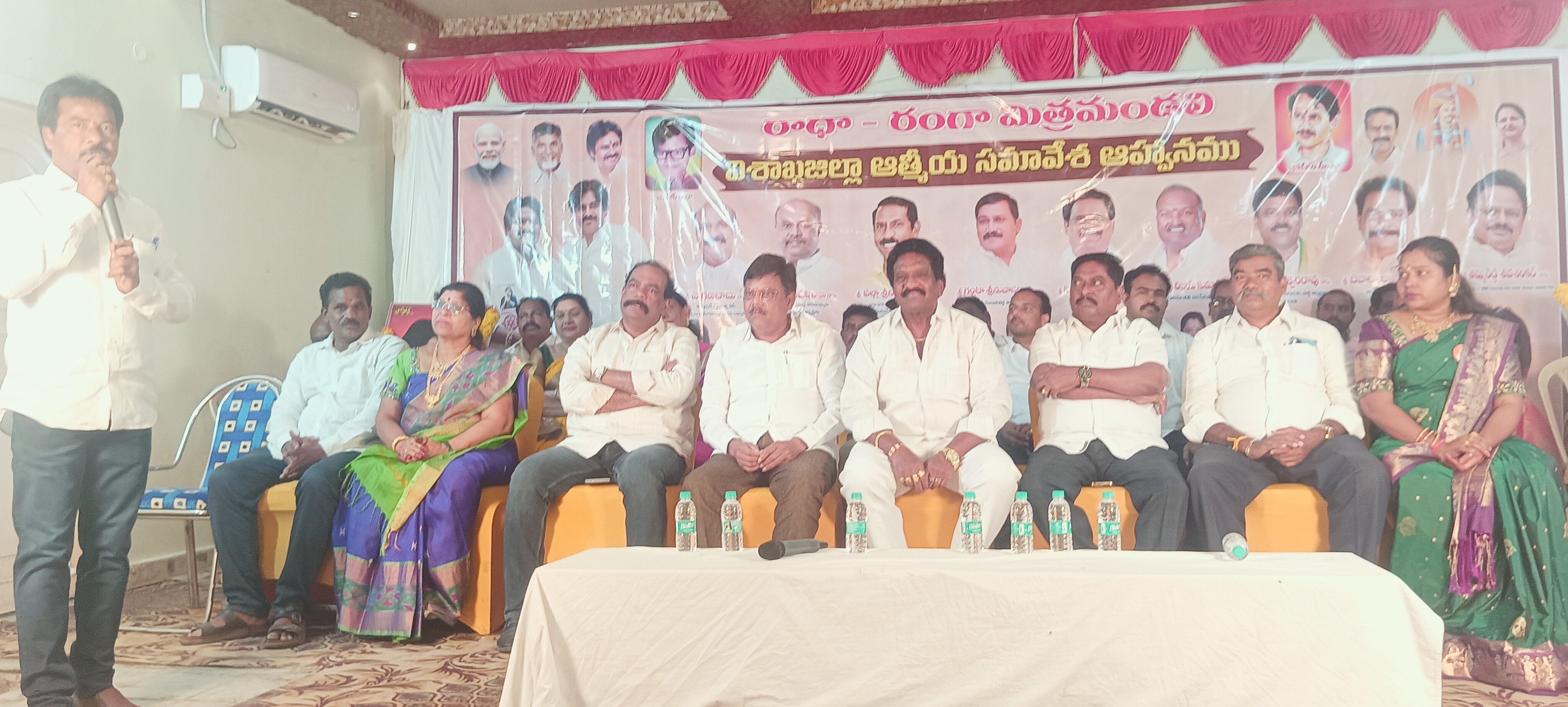 రాధా -రంగ మిత్రమండలి విశాఖ జిల్లా నూతన అధ్యక్షునిగా గేదెల మురళీకృష్ణ నియామకం.ఈ సందర్భంగా సింహాచలం రోడ్డులో గల కుమారి కళ్యాణ మండపం ఏసీ లాడ్జిలో ఆత్మీయ సమ్మేళనం ఏర్పాటు చేయడం జరిగింది.ఈ కార్యక్రమంలో ముఖ్య అతిథులుగా జనసేన పార్టీ నాయకులు బెహరా భాస్కరరావు,రెండు తెలుగు రాష్ట్రాల రాధా -రంగ మిత్రమండలి అధ్యక్షులు బుల్లెట్ ధర్మారావు, తెలుగుదేశం పార్టీ సీనియర్ నాయకులు ప్రగడ నాగేశ్వరరావు,ఇతర ముఖ్య అతిథులు పాల్గొనడం జరిగింది. తదనంతరం రాధా - రంగా మిత్రమండలి విశాఖ జిల్లా అధ్యక్షునిగా బాధ్యతలు స్వీకరిస్తూ ప్రమాణ పత్రంపై సంతకం చేశారు. తదనంతరం ముఖ్య అతిథులు చేతుల మీదగా గేదెల మురళీకృష్ణ కు ఘన సన్మానం చేయడం జరిగింది.
