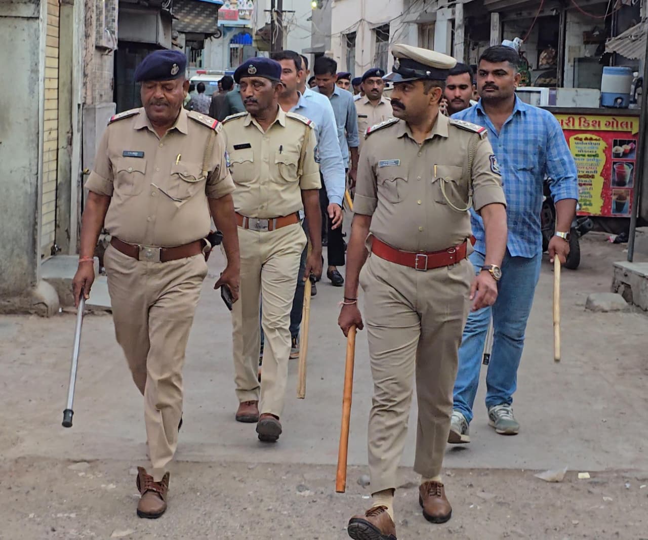 सिटी ए डिविज़न के नवनियुक्त पुलिस इन्स्पेक्टर वी.एम.डोडीया की अगुवाई में पुलिस द्वारा पट्टणीवाड, पांचहाटडी आदी शहेर के संवेदनशील इलाको में पैदल मार्च निकाला गया