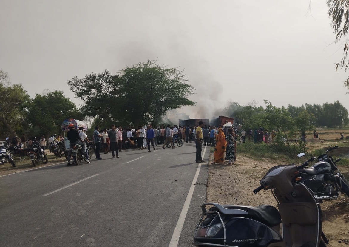 जनपद एटा और फिरोजाबाद की सीमा पर इसौली चौराहे के नजदीक डीएनपी पब्लिक स्कूल इमलिया के पास दो डंपर आमने-सामने भिड गए।भिड़ंत इतनी जबरदस्त थी की डंपरों के भिड़ते ही दोनों डंपरों में आग लग गई। मौके पर ही दोनों डंपरों के ड्राइवरों की मौत हो गई और दो कंडक्टर गंभीर रूप से घायल हुए हैं। जिनको उपचार के लिए भेज दिया गया है। घटना की सूचना मिलते ही पुलिस मौके पर आ चुकी है। एटा और फिरोजाबाद की सीमा पर हुए हादसे के कारण सकरौली थाने की पुलिस और रजावली थाने की पुलिस मौके पर मौजूद है। दमकल की दो गाड़ियांआग बुझाने में लगी हुई हैं। घटनास्थल पर सैकड़ो लोगों की भीड़ जमा है। एटा टूंडला मार्ग पूरी तरह से अवरुद्ध हो चुका है। एटा की तरफ से आने वाले वाहनों को पुलिस द्वारा इसौली चौराहे से डाइवर्ट किया जा रहा है। पुलिस प्रशासन स्थिति को काबू करने में करने में लगा हुआ है। प्रत्यक्ष दर्शियों के मुताबिक एक्सीडेंट इतना जबरदस्त था की एक्सीडेंट होते ही दोनों गाड़ियों में आग लग गई और आग की लपटों में धूं धूं करके गाड़ियां जलने लगी। दोनों ही डंपर आर एस उपाध्याय के बताए जा रहे हैं। एक डंपर टूंडला की तरफ से एटा की ओर जा रहा था और दूसरा डंपर एटा की तरफ से आगरा के लिए रहा था। यह घटना दोपहर बाद 3:30 बजे के लगभग हुई है। मौके पर काफी मात्रा में पुलिस फ़ोर्स तैनात है और कड़ी मशक्कत के साथ आग बुझाने में दमकल कर्मी लगे हुए हैं।