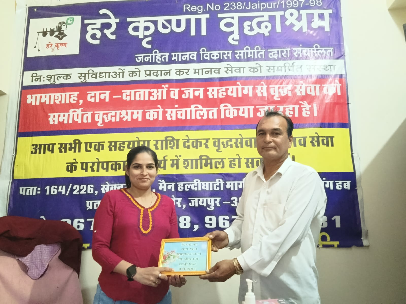 हरे कृष्णा वृद्धाश्रम की जयपुर अध्यक्ष ने एम एल डीडवाना को संस्था के बारे में अवगत कराया