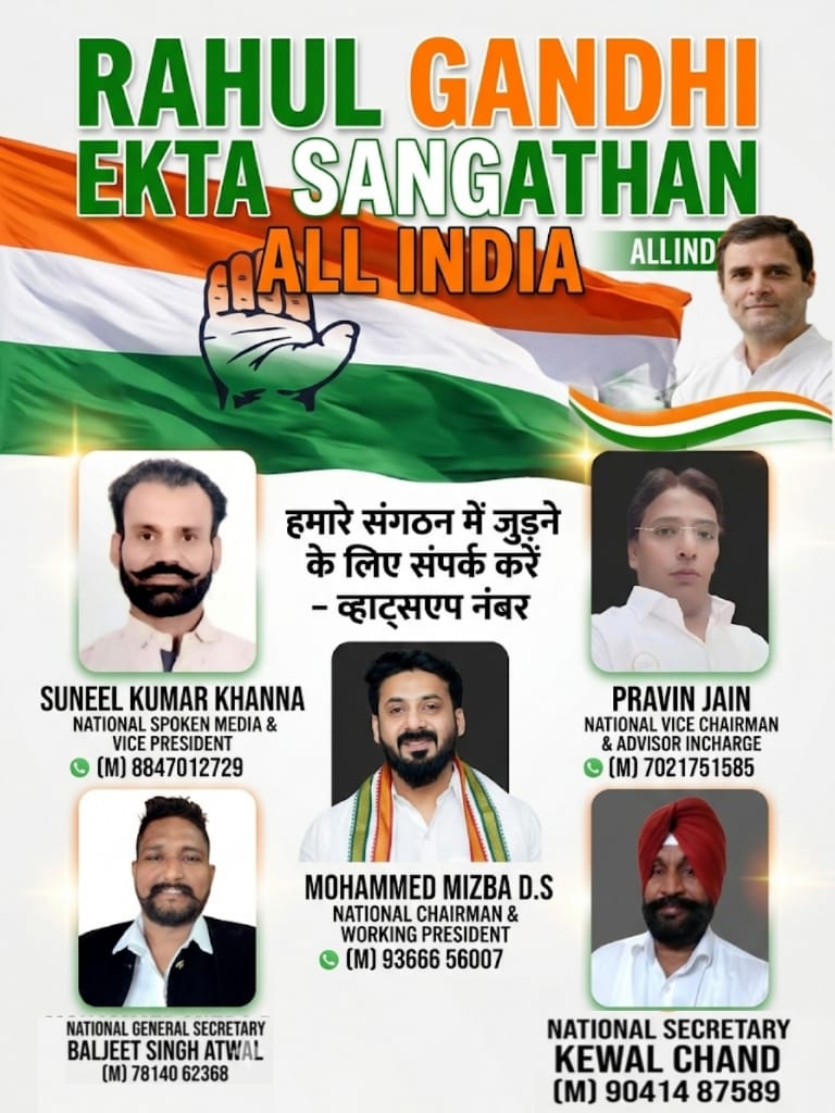 RAHUL GANDHI EKTA SANGATHAN ALL INDIA MAIN SHAMIL HONE KE LIYE HAM PER SAMPARK KAREN