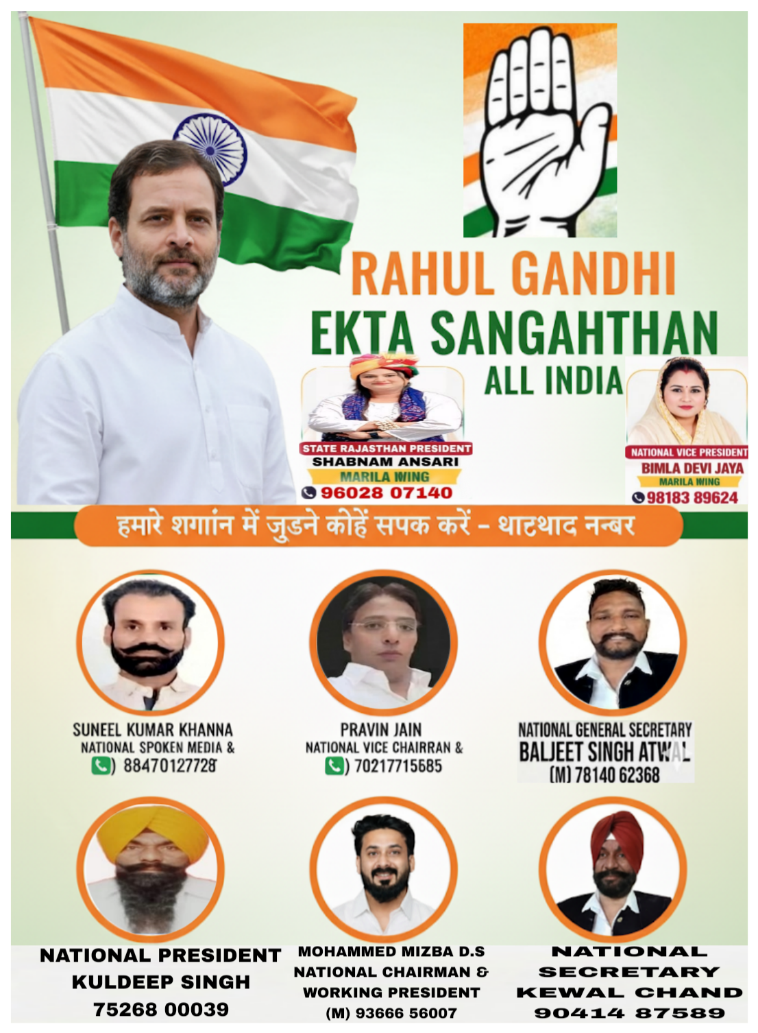 RAHUL GANDHI EKTA SANGATHAN ALL INDIA MEJWANI SHURU AAPKA APNA SANGATHAN (R.G.E.S.A.I)