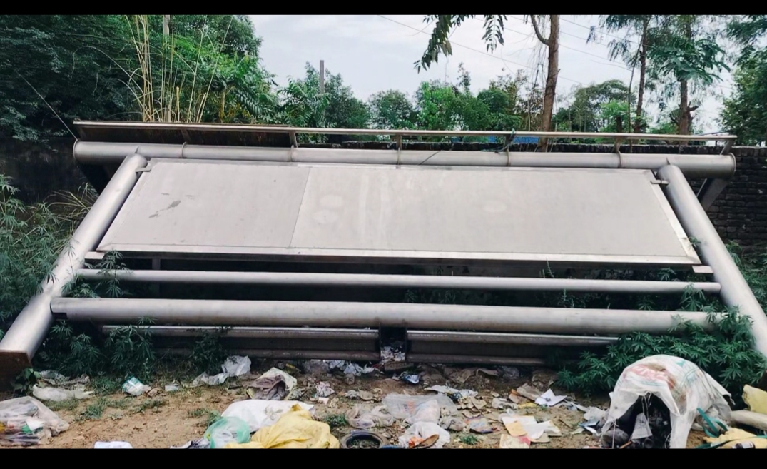 कूड़े में पड़ा हैं नगरपालिका फरुखनगर द्वारा लगाया गया ₹900000 का बस क्यू सेल्टर