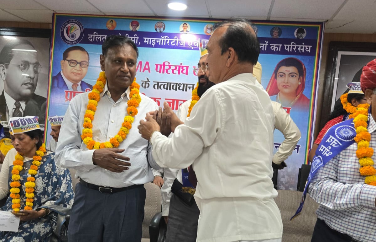 जयपुर l दिनांक 5 अप्रैल 2026 डोमा परीक्षसघ प्रांतीय संवैधानिक जागरूकता अधिवेशन (महिला सशक्तिकरण) के मुख्य अतिथि डॉक्टर उदित राज, प्रदेश अध्यक्ष नमिता सोलंकी, अध्यक्ष मधु अग्रवाल ने राष्ट्रीय भ्रष्टाचार निरोधक एवं मानव अधिकार संस्था के राष्ट्रीय अध्यक्ष एम एल डीडवाना के जयपुर आगमन पर इनका स्वागत किया l इस दौरान संस्था के बारे में अवगत कराया, संस्था के मुख्य सचिव अनिल निमेष, राष्ट्रीय कानूनी सलाहकार महेंद्र कानोता आदि मौजूद रहे l