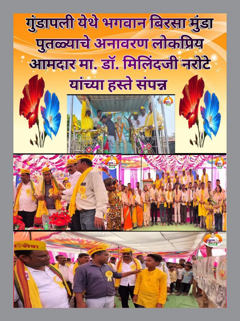 गुंडापली येथे भगवान बिरसा मुंडा यांच्या पुतळ्याचे अनावरण गडचिरोली विधानसभा क्षेत्राचे लोकप्रिय आमदार डॉ. मिलिंदजी नरोटे यांच्या हस्ते संपन्न