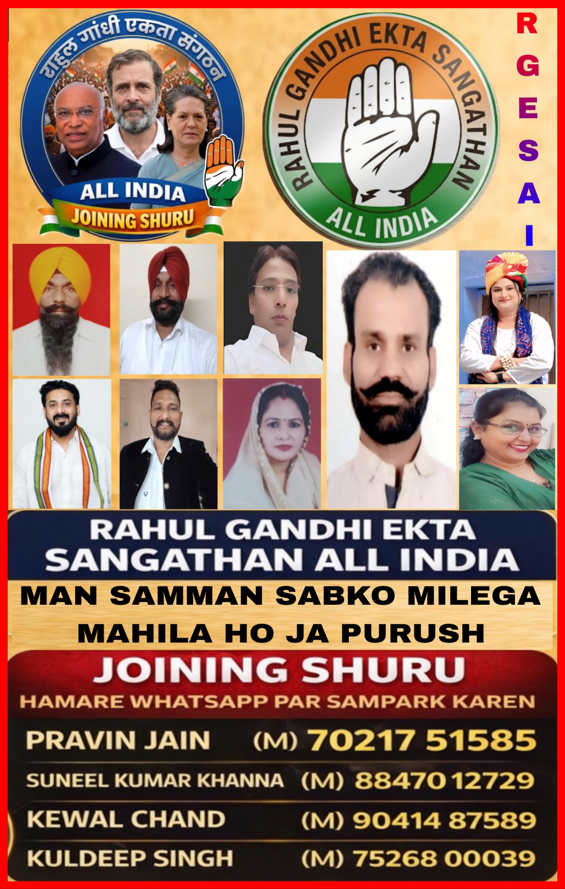 RAHUL GANDHI EΚΤΑ SANGATHAN ALL INDIA मान सम्मान सबबको मिलेगा महिला हो या पुरुष JOINING SHURU