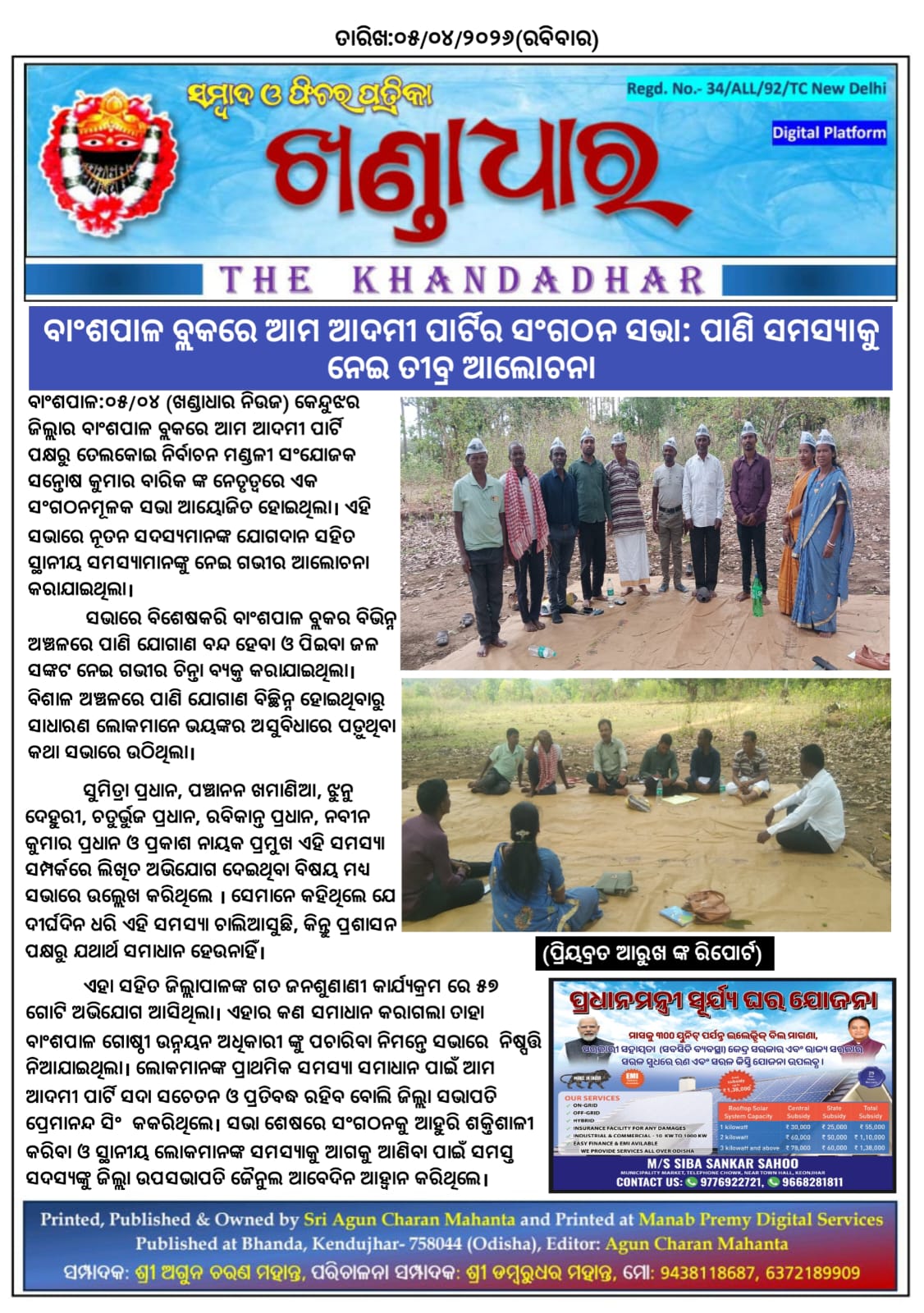 ବାଂଶପାଳ ବ୍ଲକରେ ଆମ ଆଦମୀ ପାର୍ଟିର ସଂଗଠନ ସଭା: ପାଣି ସମସ୍ୟାକୁ ନେଇ ତୀବ୍ର ଆଲୋଚନା।