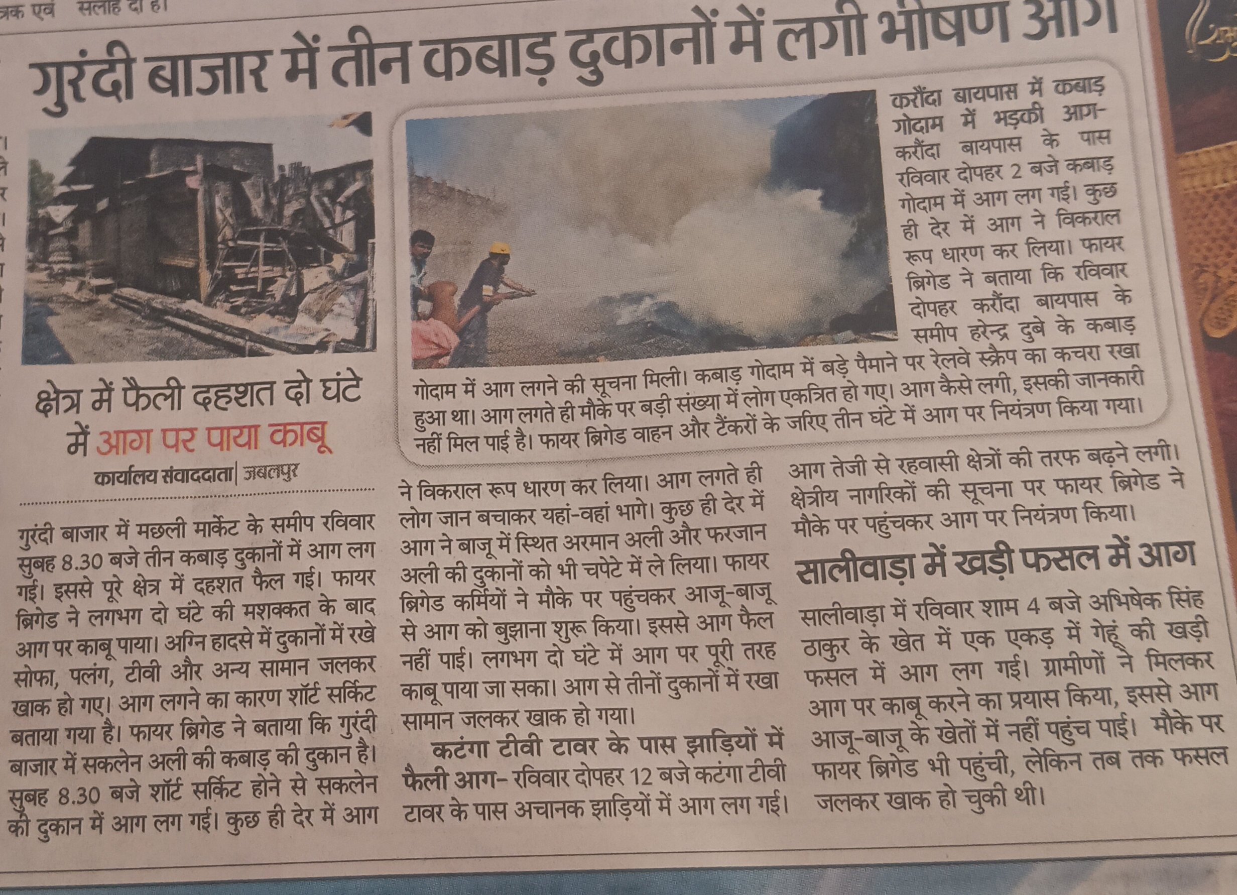 गुरंदी बाजार में तीन कबाड़ दुकान में लगी भीषण आग