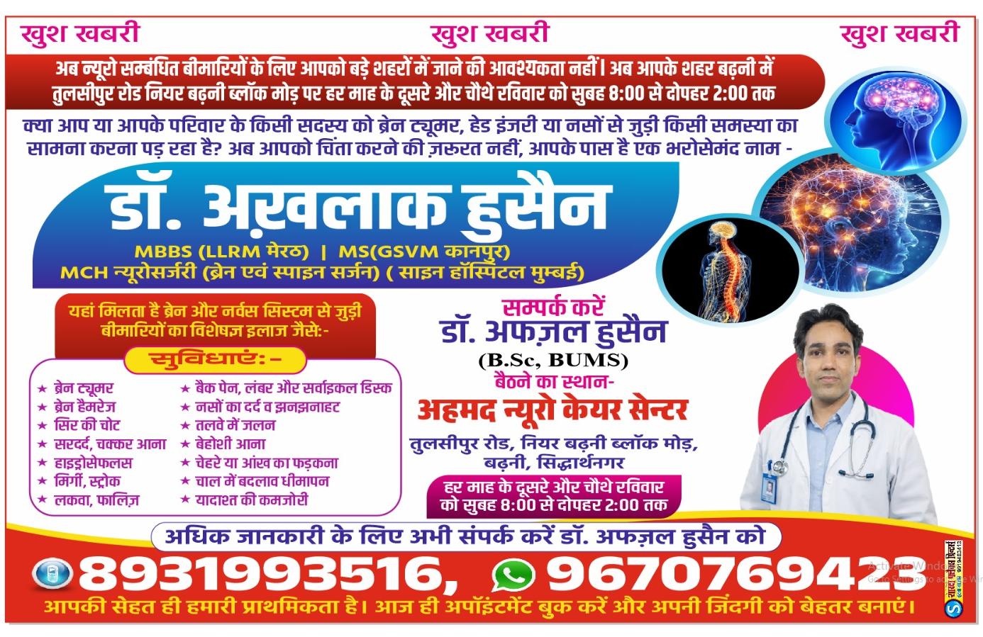 बढ़नी बना न्यूरो इलाज का नया हब: मुंबई के प्रख्यात सर्जन डॉ. अख़लाक हुसैन MBBS MS MCH अब सिद्धार्थनगर में देंगे अपनी सेवाएं