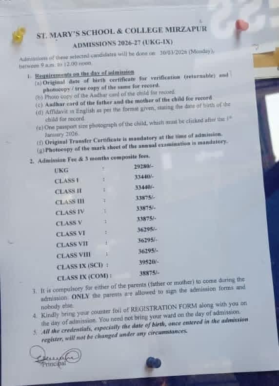 मिर्जापुर में निजी स्कूलों द्वारा फीस के नाम पर अभिभावकों से मनमानी वसूली का आरोप सामने आ रहा है। शहर के St. Mary's School Mirzapur पर भी अभिभावकों ने रजिस्ट्रेशन और अन्य शुल्क को कंपोजिट फीस में जोड़कर अधिक रकम लेने का आरोप लगाया है।