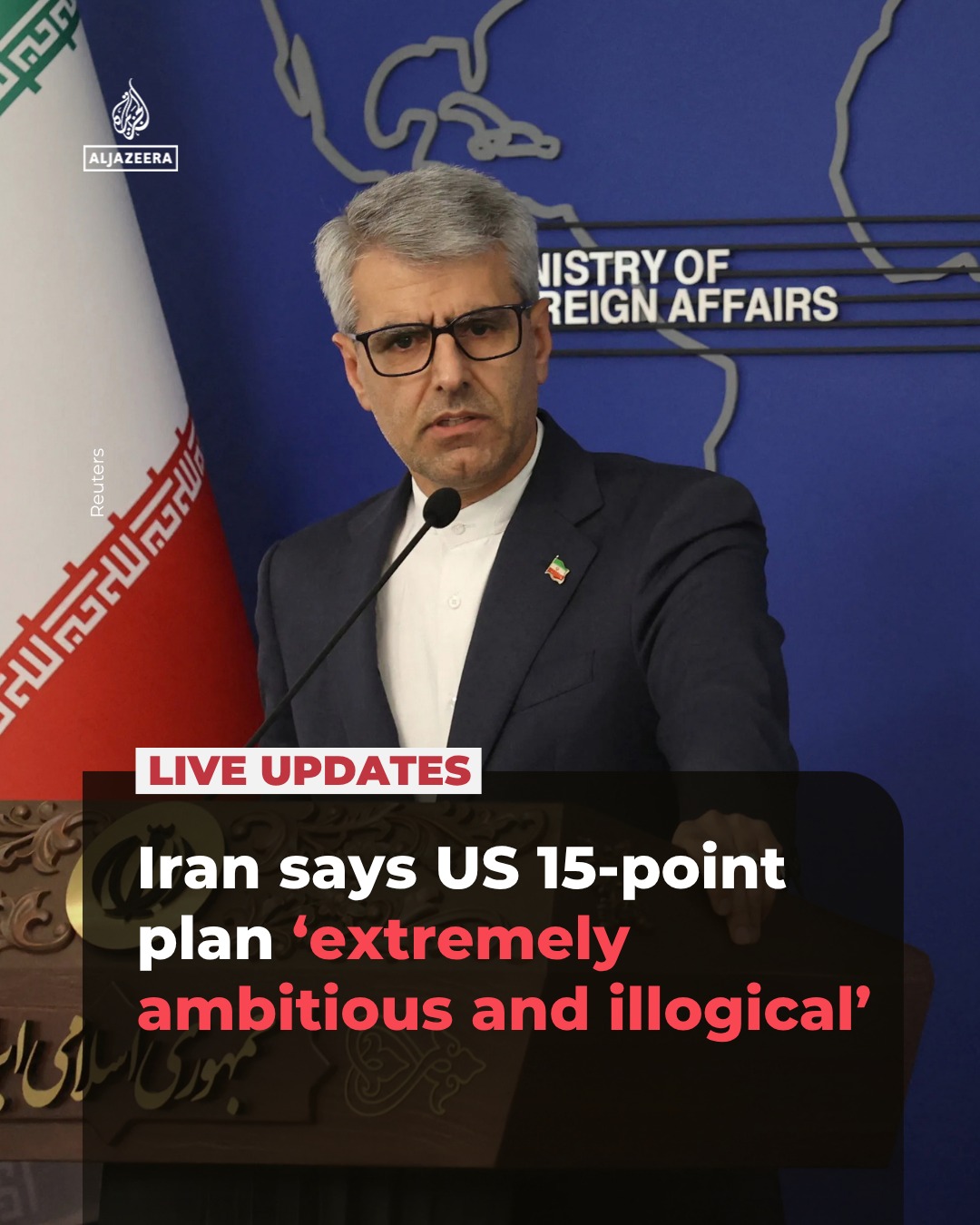 ईरान के विदेश मंत्रालय के प्रवक्ता इस्माइल बगाई का कहना है कि युद्ध को समाप्त करने के हालिया प्रस्तावों के बीच तेहरान ने अपनी माँगें तय कर ली हैं, लेक