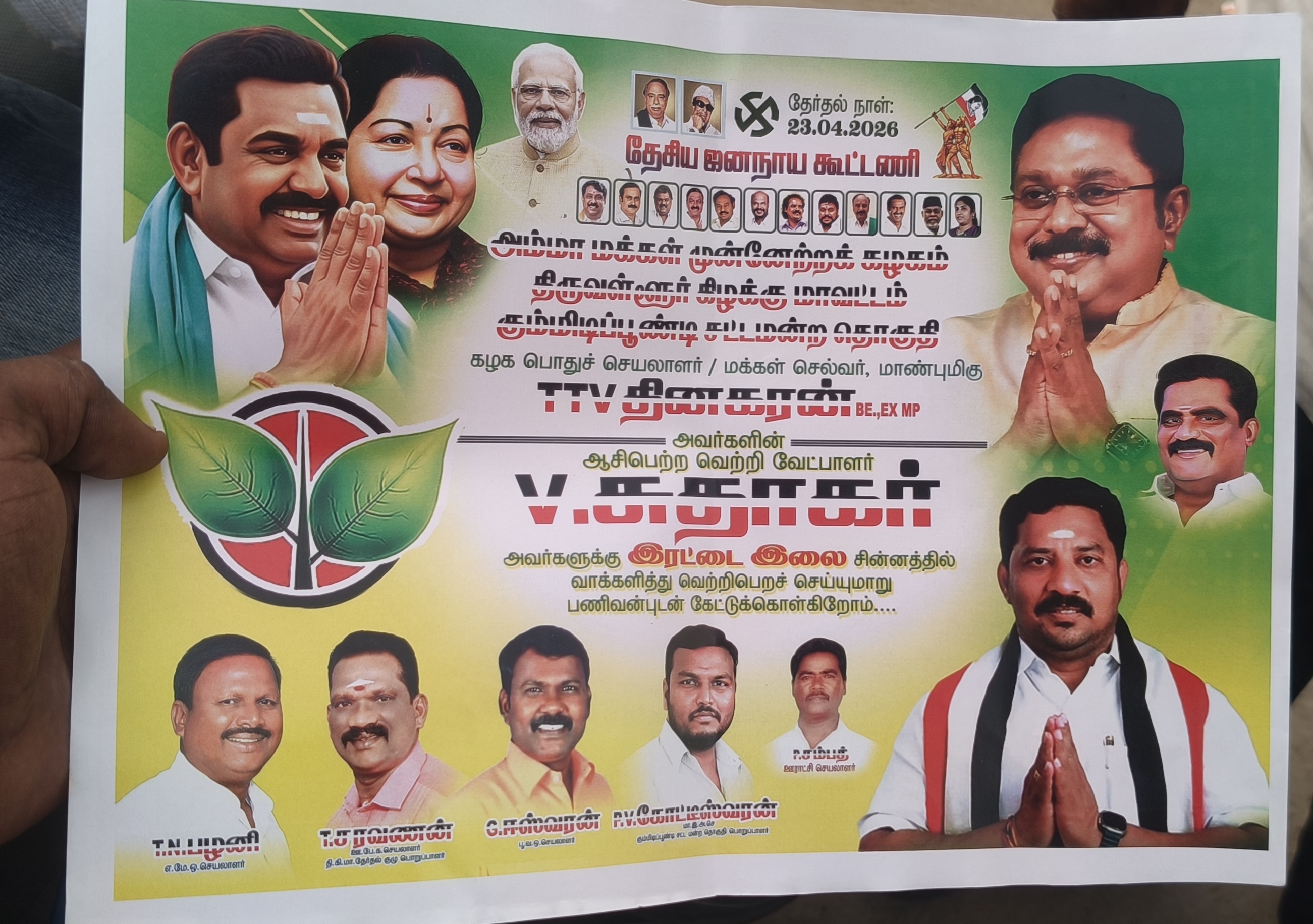 கும்மிடிப்பூண்டி தொகுதியில் தேசிய ஜனநாயக கூட்டணியில் அதிமுக சார்பில் வி.சுதாகர் போட்டியிடும் நிலையில் அம்மா மக்கள் முன்னேற்ற கழகம் திருவள்ளூர் கிழக்கு மாவட்டம் சார்பில் எல்லாபுரம் மேற்கு ஒன்றிய செயலாளர் T.N.பழனி வியாபாரிகள் மற்றும் பொதுமக்களிடையே இரட்டை இலை சின்னத்திற்கு வாக்கு சேகரிப்பில் ஈடுபட்டார்.
