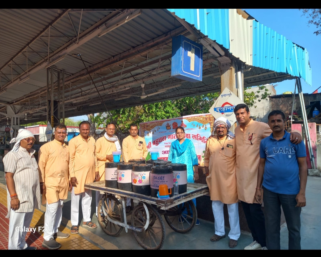 भीषण गर्मी में यात्रियों को प्यास से राहत, बहुचरा माता सेवा समिति, बुरहानपुर स्टेशन पर निःशुल्क जल वितरण