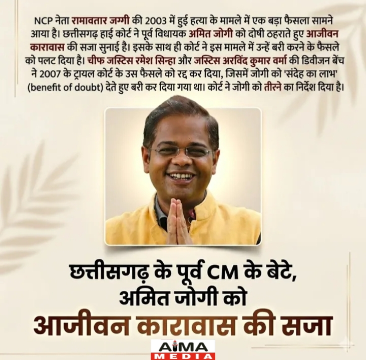 यह मामला वर्ष 2003 में NCP नेता रामावतार जग्गी की हत्या से जुड़ा है। हाईकोर्ट ने ट्रायल कोर्ट के उस फैसले को पलट दिया, जिसमें वर्ष 2007 में जोगी को संदेह का लाभ देते हुए बरी कर दिया गया था।