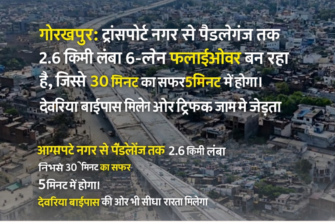 गोरखपुर शहर को जल्द ही मिलेगा अपना पहला 6-लेन एलिवेटेड फ्लाईओवर, जो ट्रांसपोर्ट नगर से पैडलेगंज तक बनाया जा रहा है।