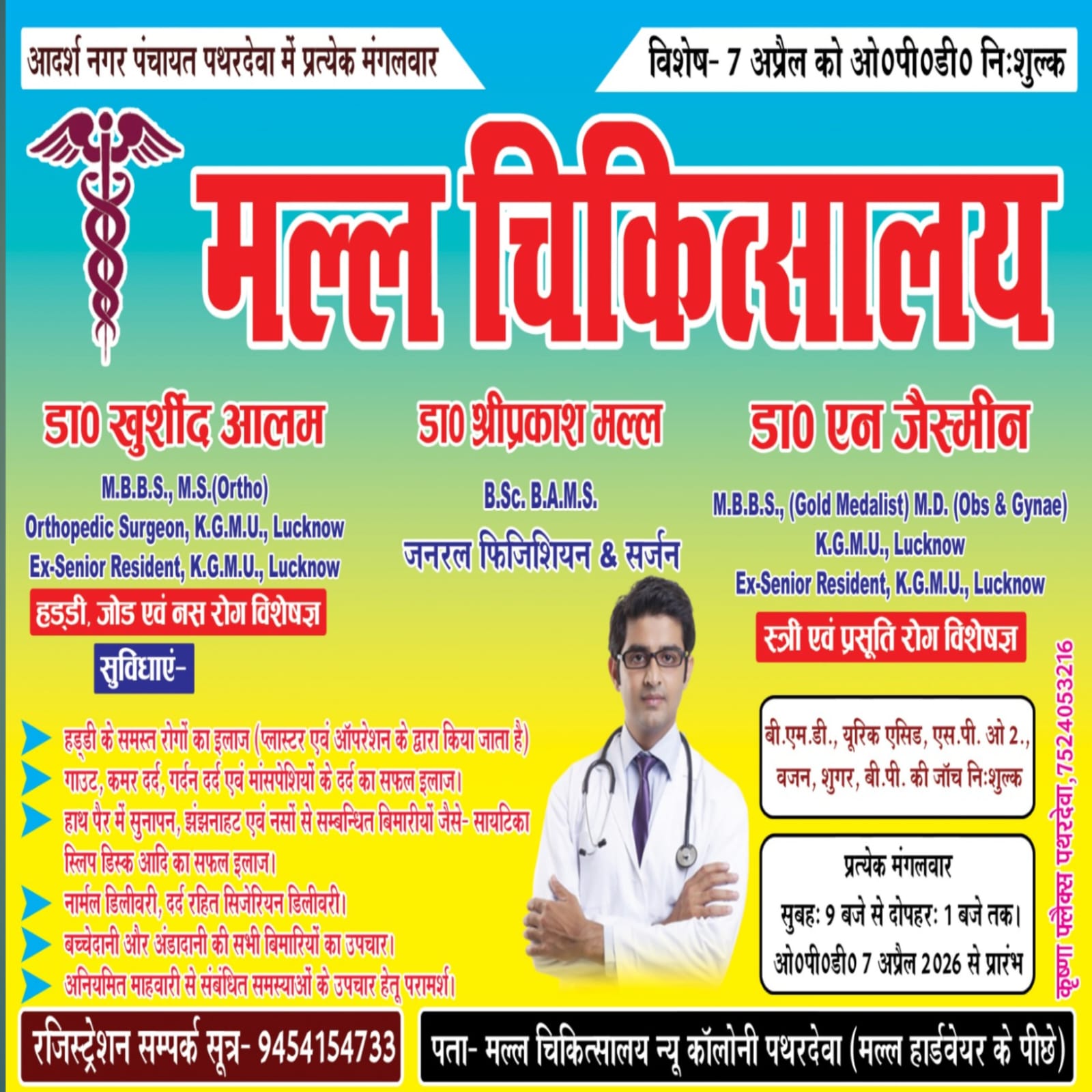 मल्ल चिकित्साकल का भव्य शुभारम्भ दिनांक 07/04/2026 दिन मांगवार समय सुबह 9 बजे से किया जायेगा मुख्य अतिथि माo श्री वृह्माशंकर त्रिपाठी जी