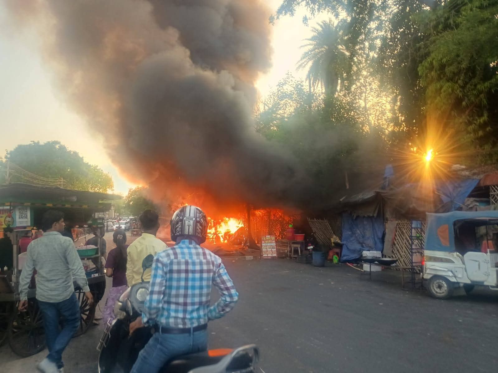 फूलबाग नेहरू युवा केन्द्र के बाहर फल मंडी में लगी भीषण आग ।