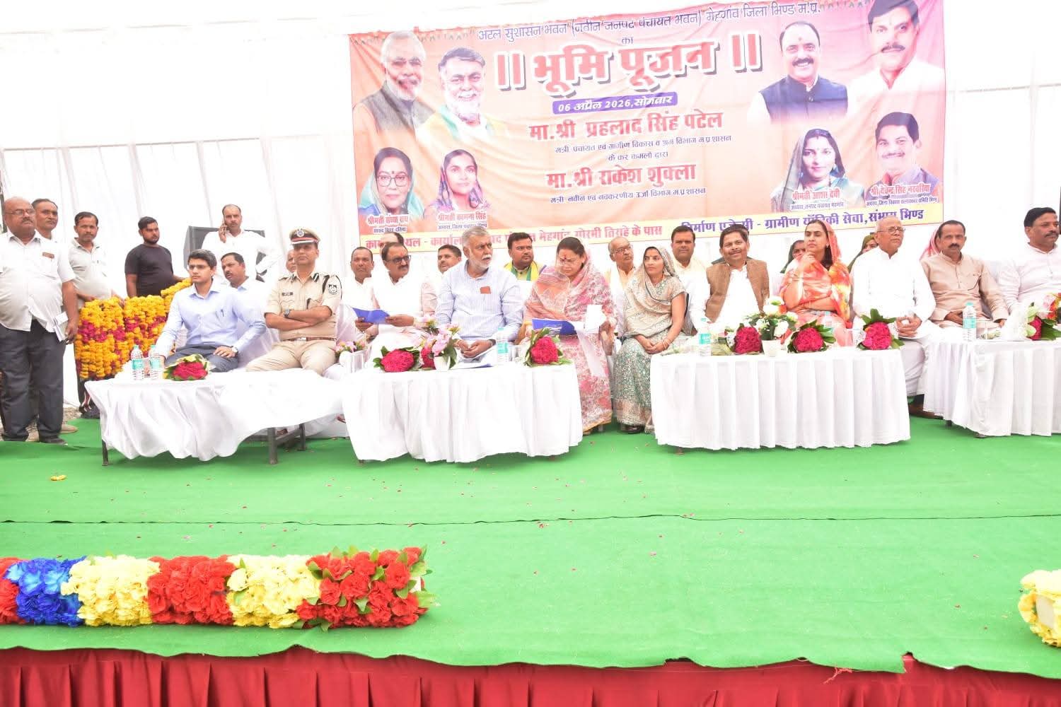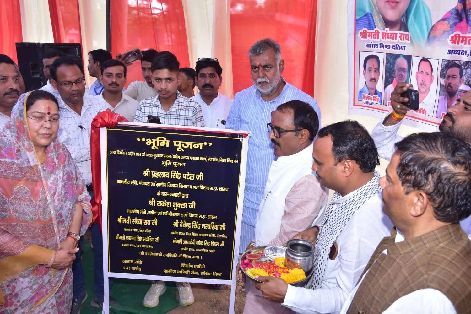 मध्यप्रदेश शासन के पंचायत एवं ग्रामीण विकास तथा श्रम विभाग के मंत्री एवं जिले के प्रभारी मंत्री श्री प्रहलाद सिंह पटेल ने सोमवार को भिण्ड जिले के प्रवास के दौरान विभिन्न स्थानों पर लगभग 05 करोड़ 62 लाख 50 हजार से अधिक के विकास कार्यों का लोकार्पण एवं भूमिपूजन कर जिलेवासियों को महत्वपूर्ण सौगात दी। मंत्री श्री पटेल ने भिण्ड जिले की जनपद पंचायत मेहगांव में लगभग 5.25 करोड़ के “अटल सुशासन भवन (जनपद पंचायत भवन) मेहगांव का भूमिपूजन तथा जनपद पंचायत भिण्ड की ग्राम पंचायत दबोहा में लगभग 37.50 लाख के अटल ग्राम सेवा सदन (ग्राम पंचायत भवन) दबोहा का लोकार्पण वैदिक मंत्रोच्चार के साथ विधिवत संपन्न किया। जिससे ग्रामीण क्षेत्रों में सामाजिक एवं सामुदायिक गतिविधियों को नया आयाम मिलेगा।