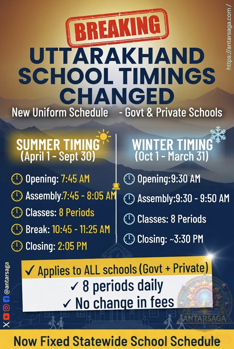 According to the department, the decision aims to standardise school functioning, ensure uniform academic hours, and align school schedules with the seasonal conditions of Uttarakhand’s diverse geography.