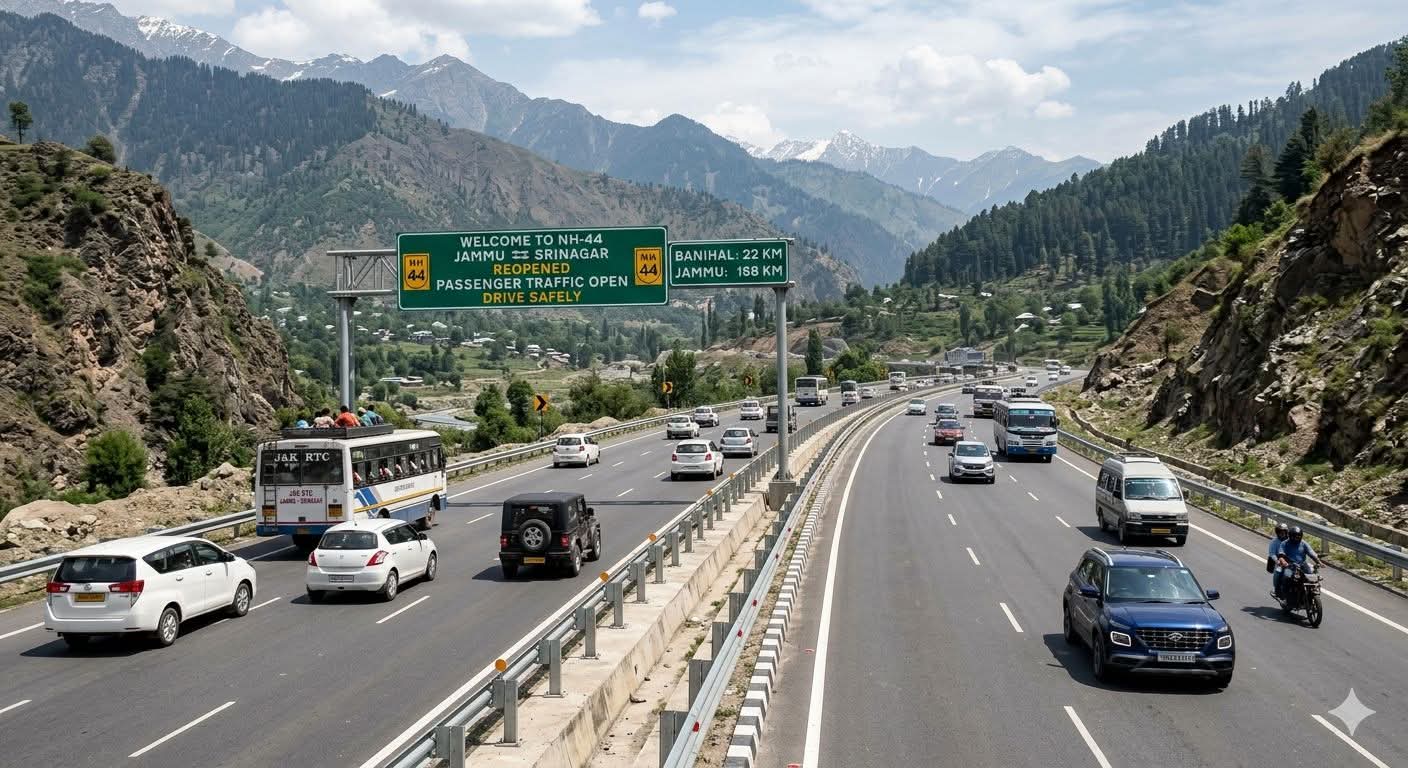 The Jammu–Srinagar National Highway (NH-44) has been reopened for passenger traffic in both directions, bringing major relief to commuters and stranded travelers.