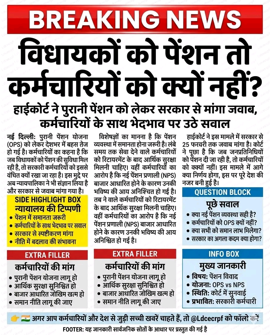 विधायकों और सांसदों को ओल्ड पेंशन कर्मचारियों को एनपीएस ऐसा भेदभाव क्यों हाई कोर्ट ने सरकार को किया तलब