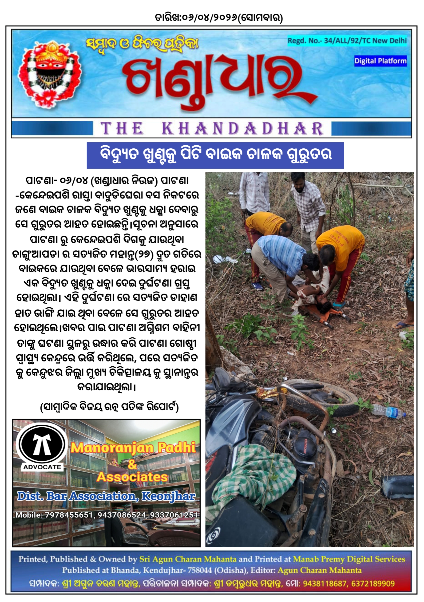 ଖଣ୍ଡାଧାର ନିଉଜ- ସାମ୍ବାଦିକ ବିଜୟ ରତ୍ନ ପତିଙ୍କ ରିପୋର୍ଟ।