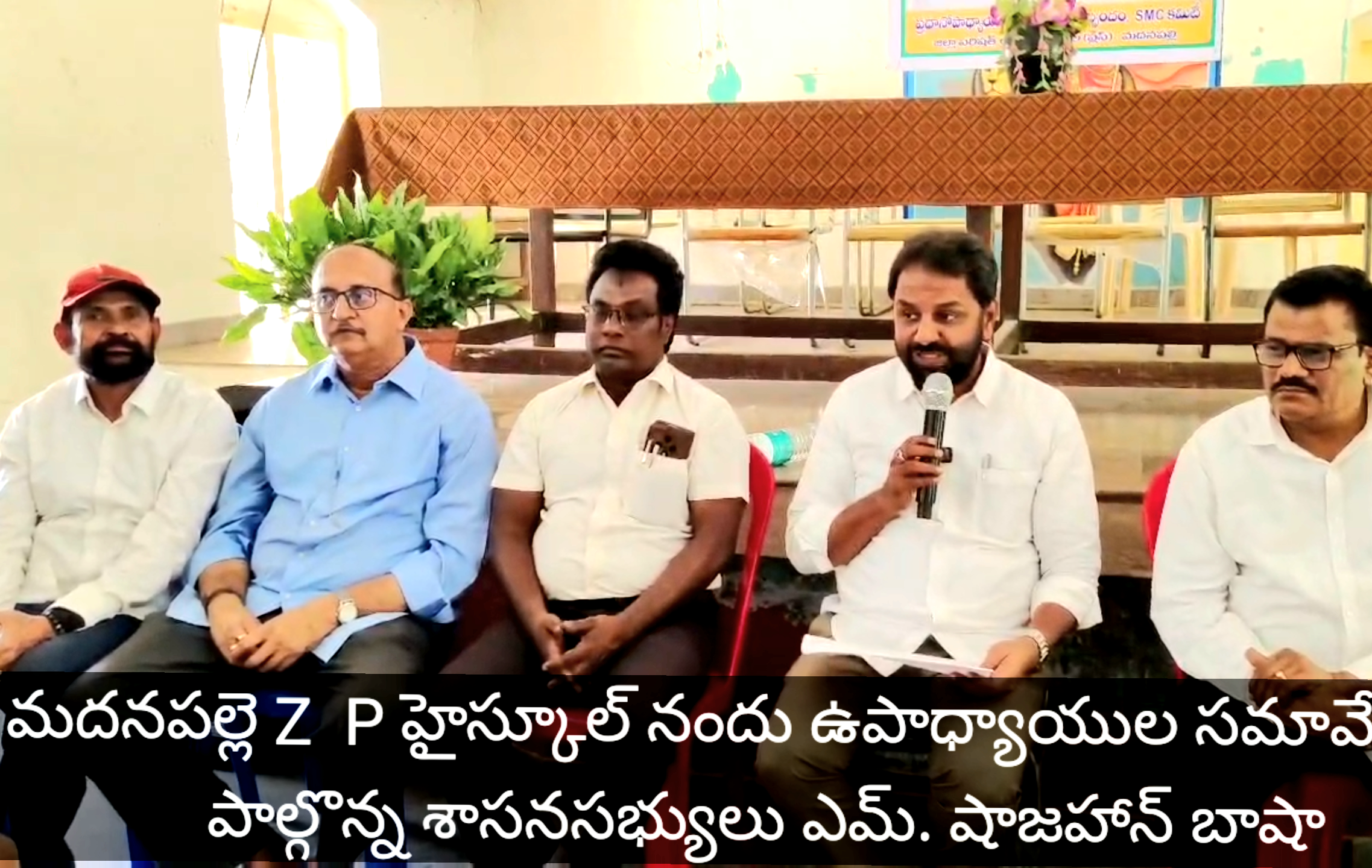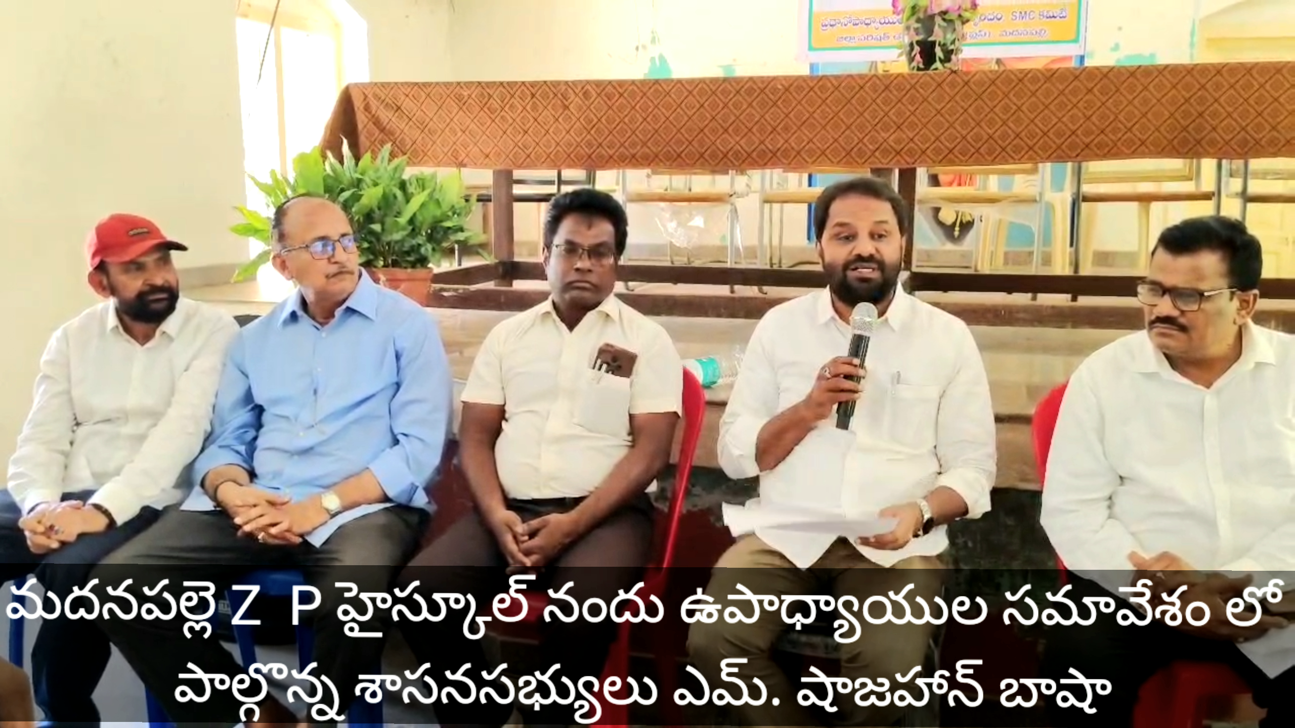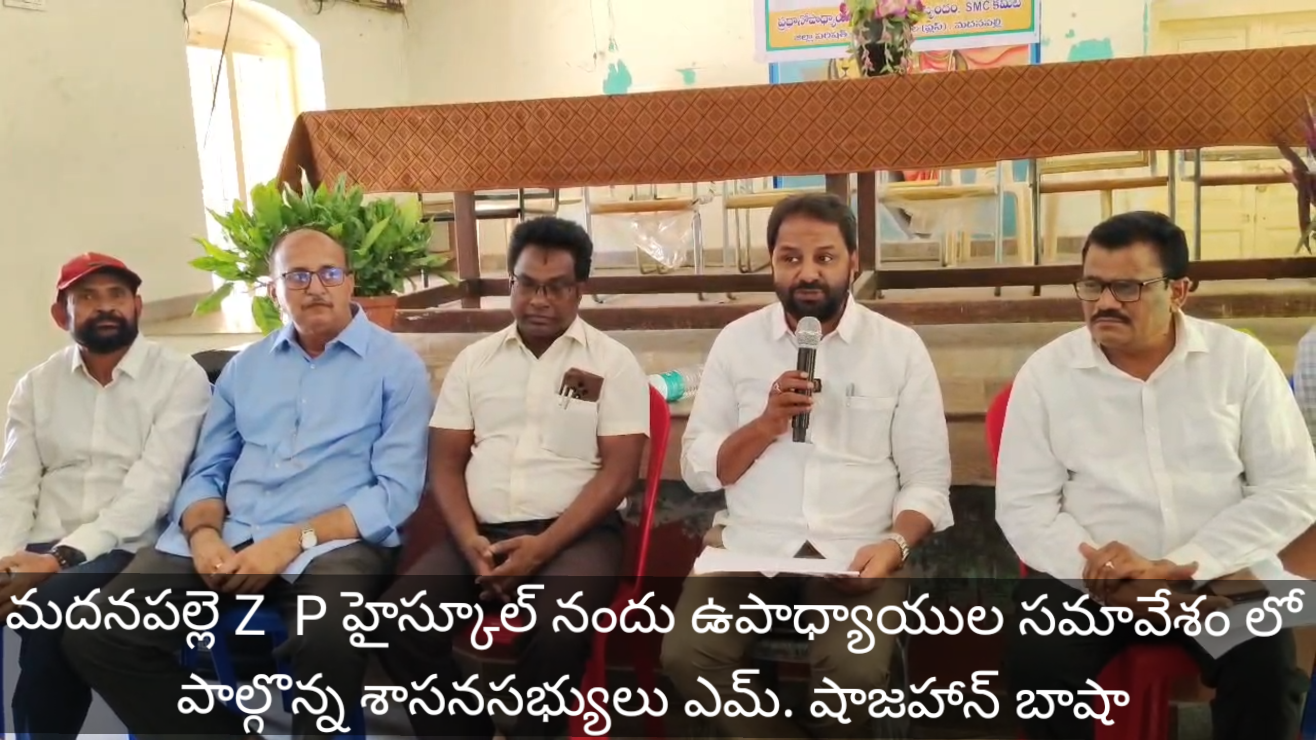 అన్నమయ్య జిల్లా మదనపల్లె జిల్లా పరిషద్ పాఠశాల లో ఉపాధ్యాయుల సమావేశానికిహాజరైన శాసనసభ్యులు షా జహాన్ బాషా