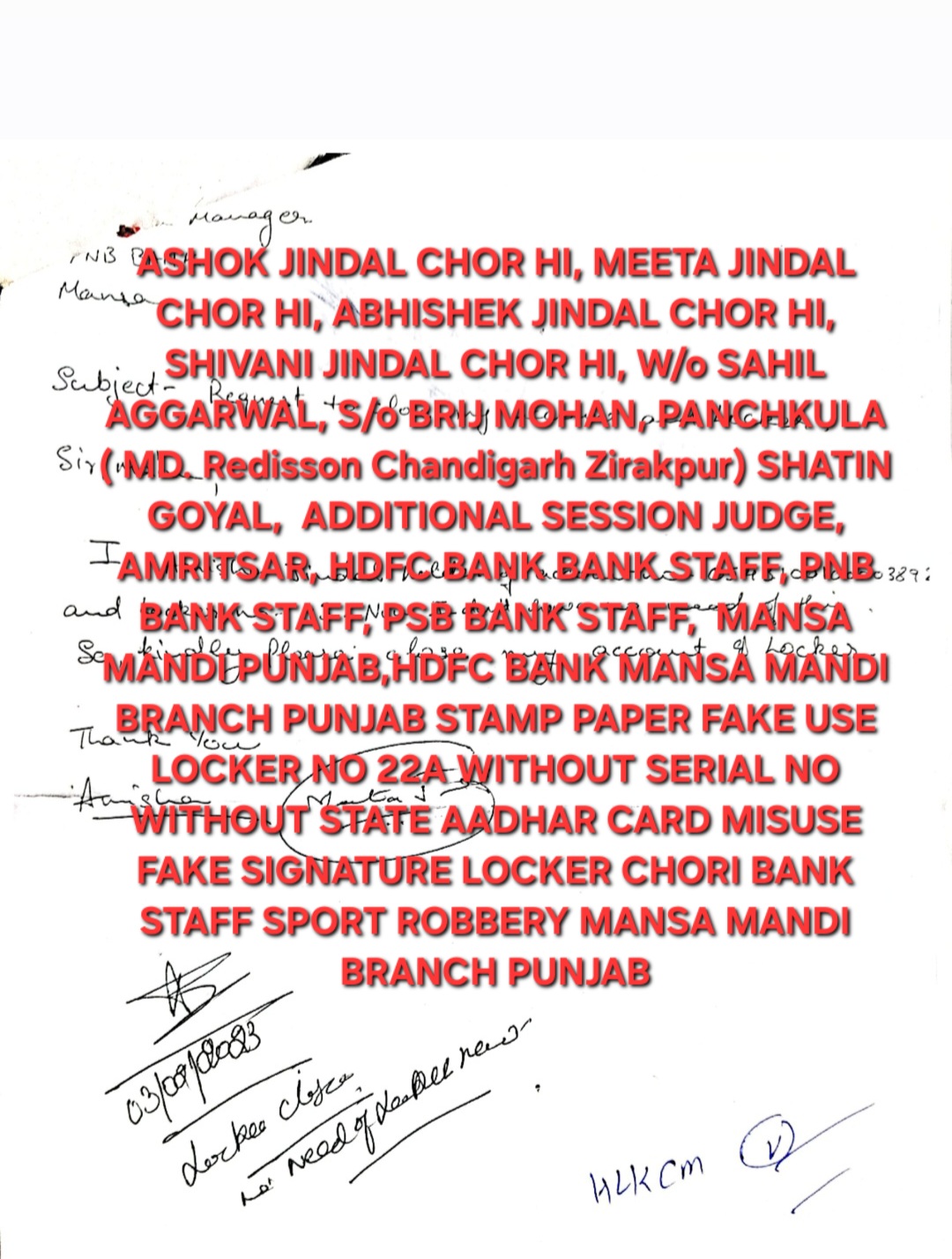 Punjab Police CM Bhagwant Mann & Arvind Kejriwal Sarkar chor Hi Rishvat le ke FIR NO 22/2024 Mansa Punjab FAKE FIR Punjab Sarkar & Police Sport for Hdfc bank Mansa Punjab Fake Stamp Paper Without Serial no & State & Aadhaar Card Misuse USE & Fake Signatures & hdfc bank Locker No 22A 2Cr Gold Chori PNB Locker No 43 2Cr Gold Chori & Rice Mill Firms Accused of Fraud, Bogus Billing and Tax Evasion in Mansa Punjab: