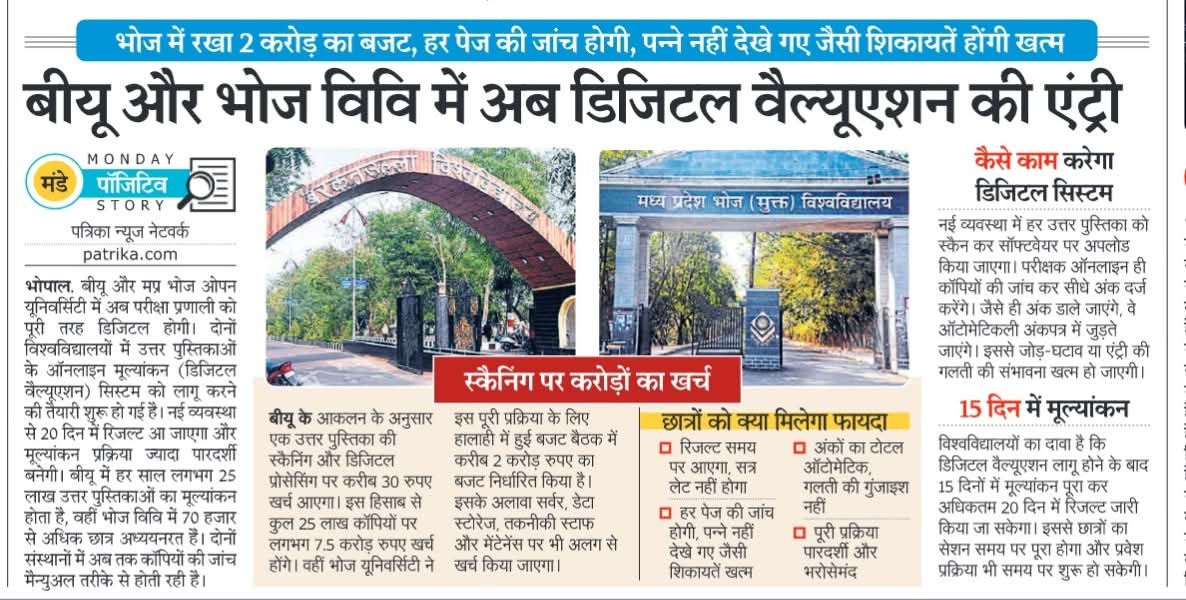 बीयू और मप्र भोज ओपन यूनिवर्सिटी में अब परीक्षा प्रणाली पूरी तरह होगी डिजिटल #MadhyaPradesh