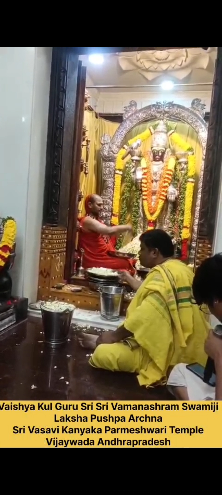 *Vaishya Kulguru Sri Sri Vamanashram Swamiji performed the sacred 🪷 **Laksha Pushpa Archana*🪷 *dedicated to Goddess Sri Vasavi Kanyaka Parameshwari Devi in Vijayawada City* .